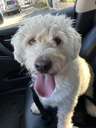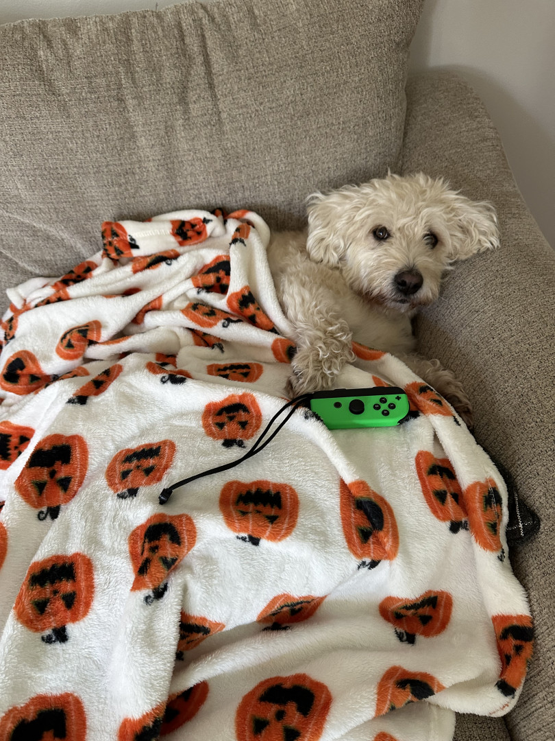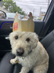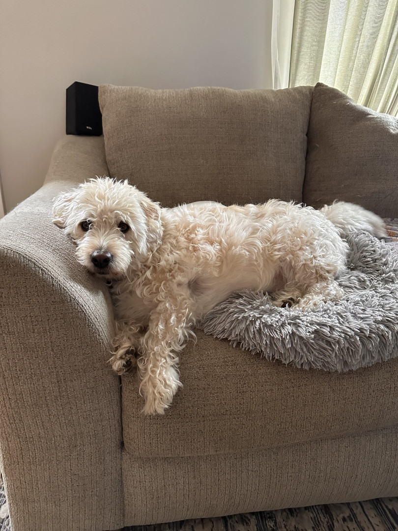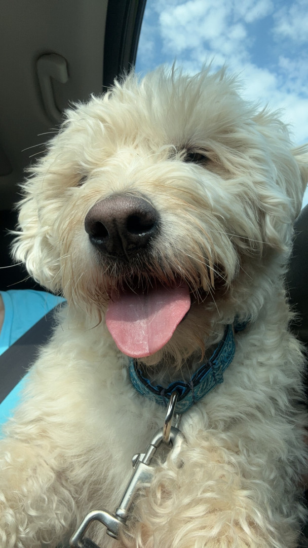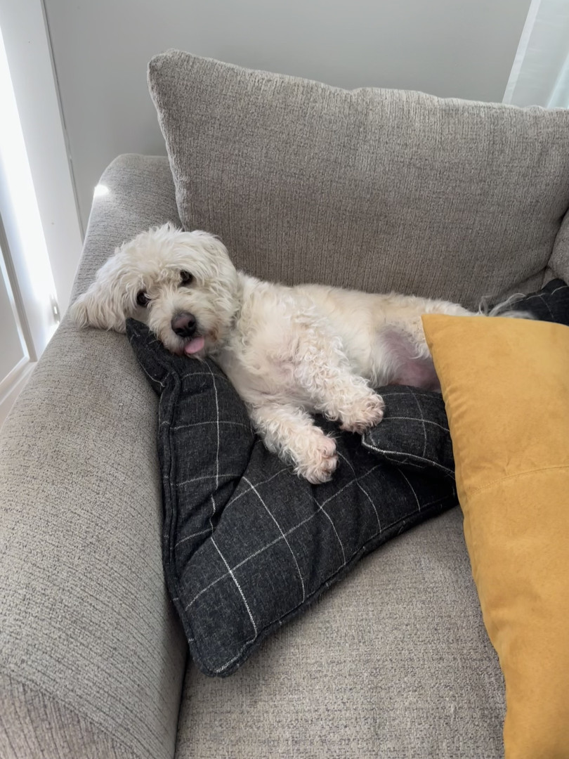 Dougs perfect day involves pup cups, car rides, a “scrunk” aka a walk, and couch hangs until he says it’s time for bed!