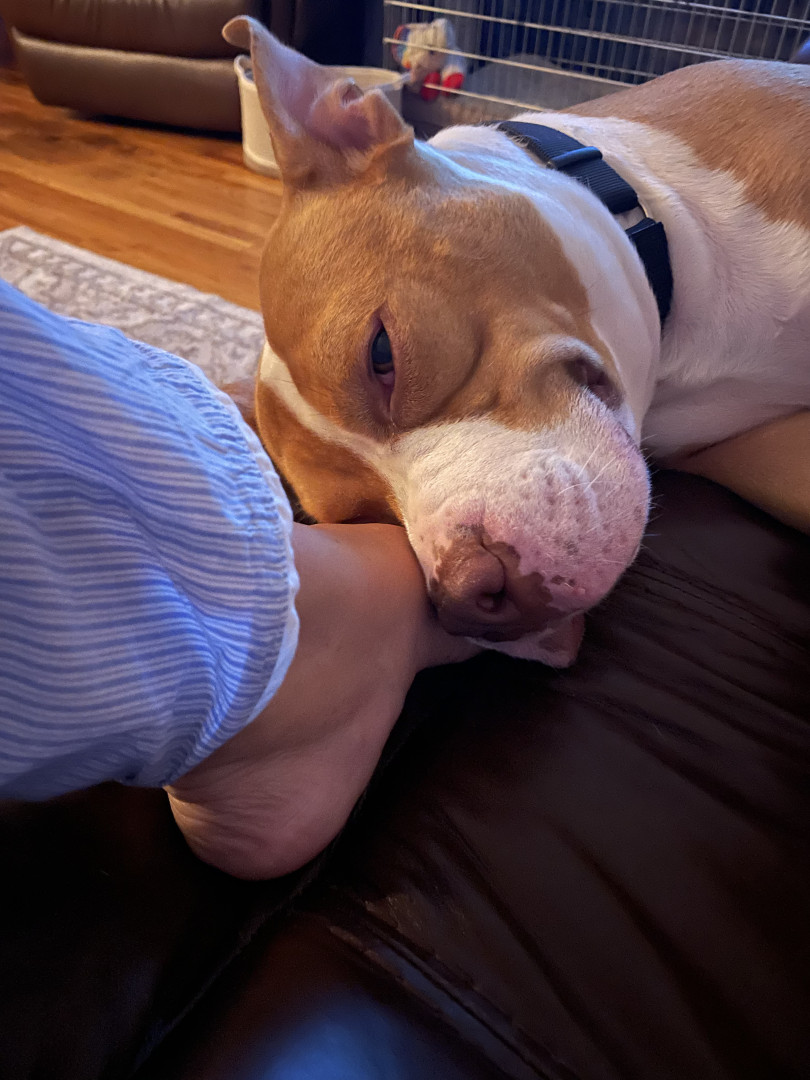 Dougie’s breed is misunderstood. Pit bulls can be scary but only when provoked. I was hesitant about adopting a pit bull. I got to know him and understand how sweet, loving and caring he is. Dougie is very protective of his mom. He doesn’t like losing sight of me and will literally run around the house sniffing every closed door until he finds me. I don’t know if America would agree that a red nose pit bull would be there favorite pet. All I know is Dougie is my favorite pet and family member.