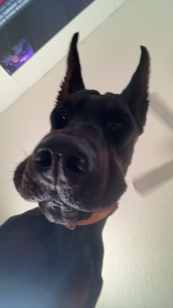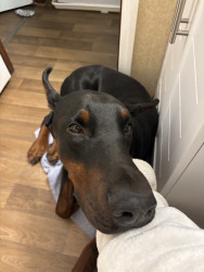 Draco is 2, and very big personality. He loves cheese and all women. The European Doberman Stud is a gorgeous example of the breed!
