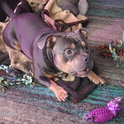 My name is Drako. I am a Pocket Bully. I am always playful unless im sleeping with my people! I am only 14" tall and weigh 65lbs.!