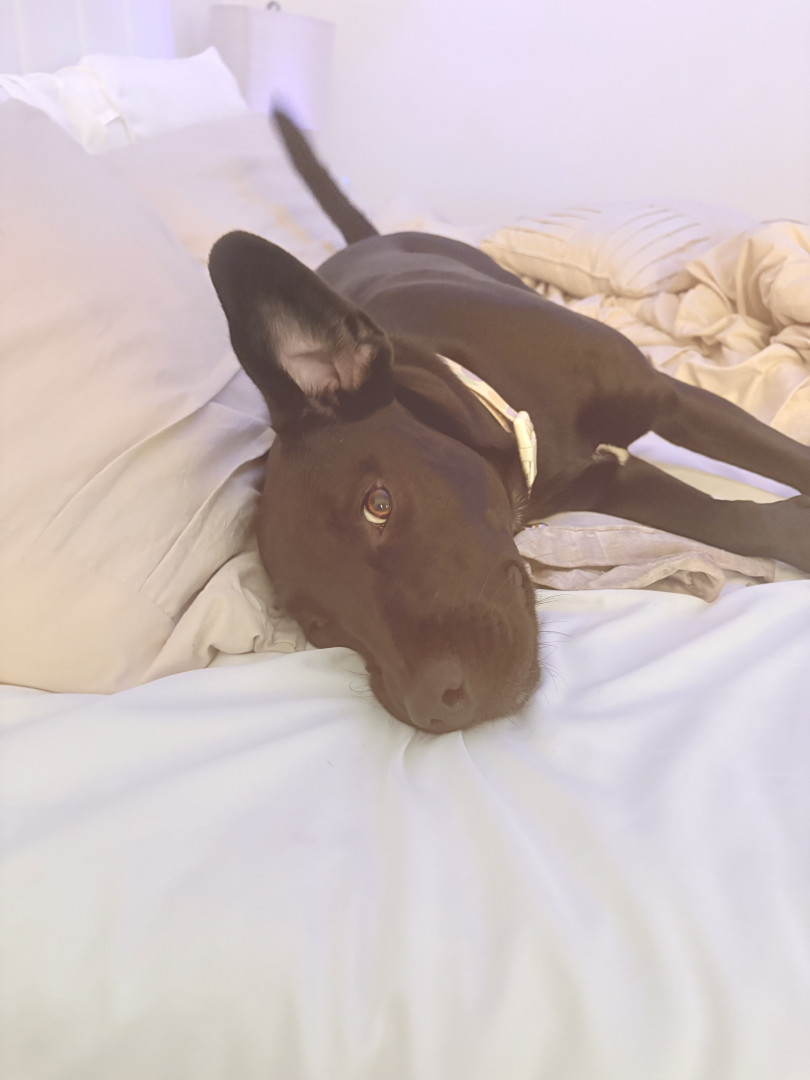 Duckie Mae is playful, cheerful, and a big ol cuddle bug! She is always smiling and is always up to play! She is the sweetest dog ever!