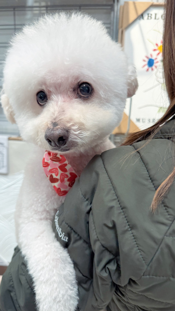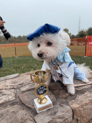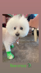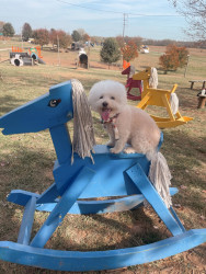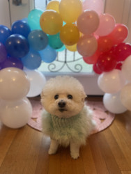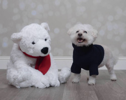Dudlee is a 13 y/o Bichon. Dudlee loves new clothes and taking photos. His favorite snacks are dog chicken strips & his person is his mom.