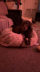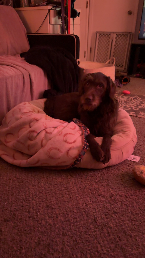 Dudley is the most lovable pup. Full of kisses n wanting to be little spoon. If he isn’t snugglin with us, he’s cuddled up to his bros n sis