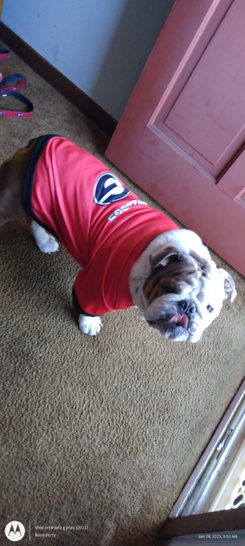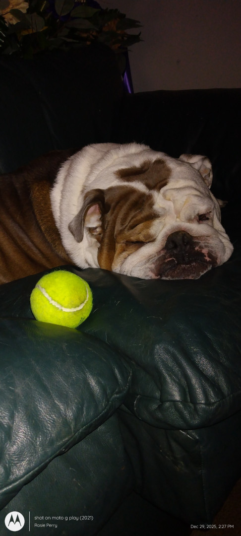 His favorite toy is a tennis ball. His daddy, Brian Perry is a tennis coach so, those come easy. Lots of them. His go to treat, Pepperoni and mom's homemade, healthy treat! He loves pumpkins and peanut butter treats made from home. #dukeperry2026