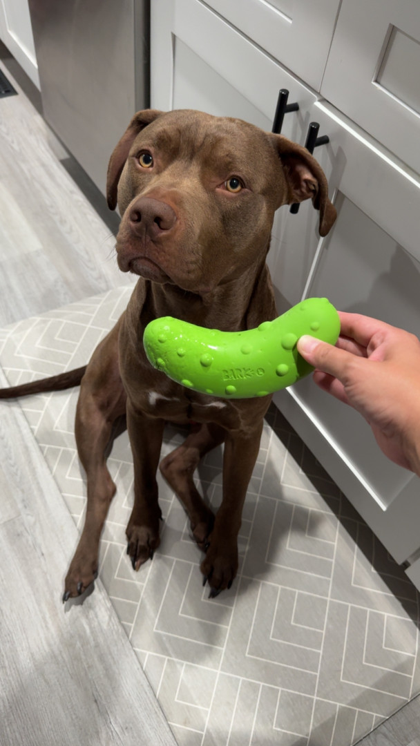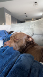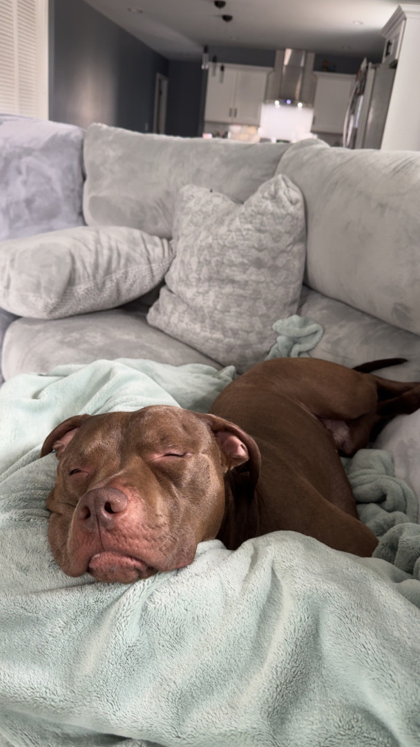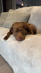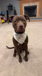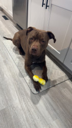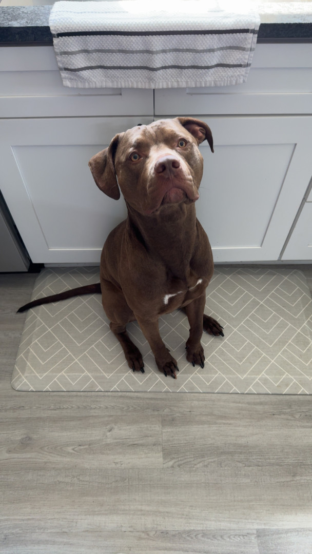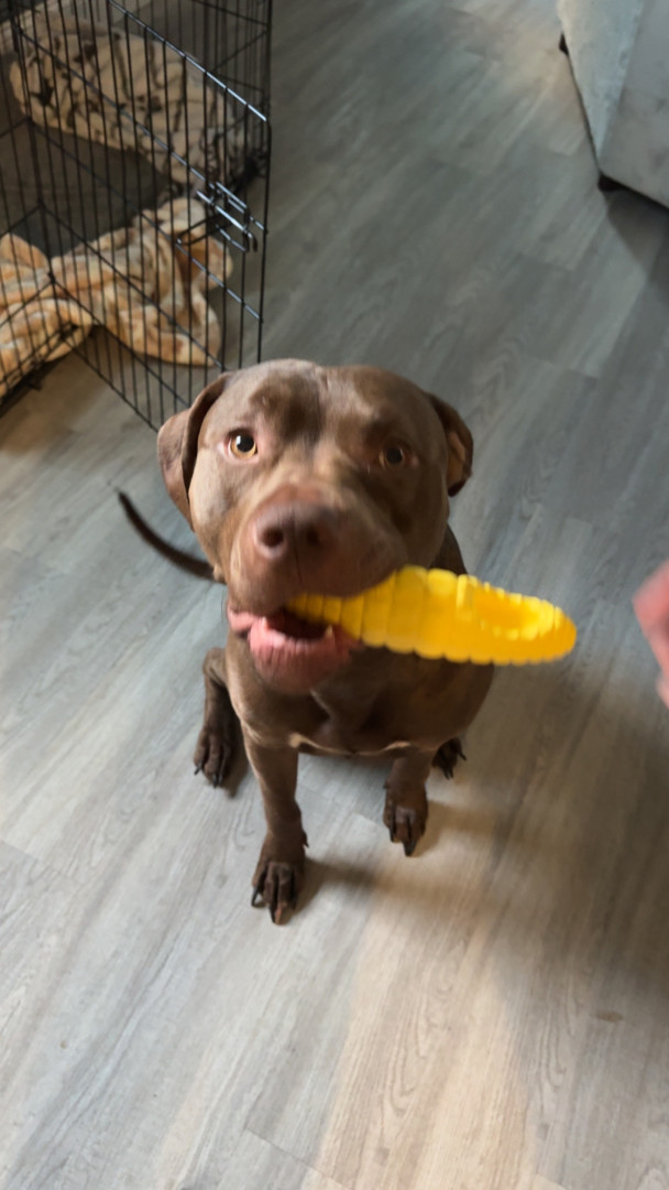 Duke is a 2 year old calm, laid back pitbull who loves nothing more than pup cups, toys, and laying down for a good nap!
