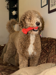 Duke is a wild crazy golden doodle who loves to spend his time chasing squirrels, playing with his toys and cuddling with everyone.