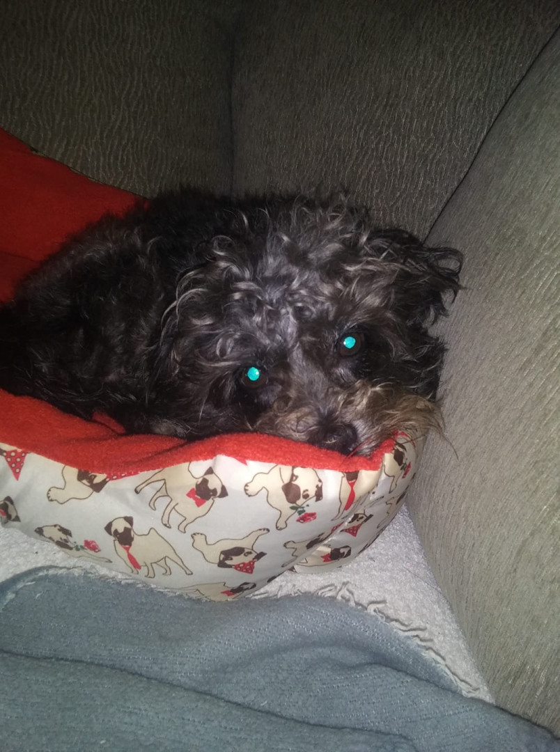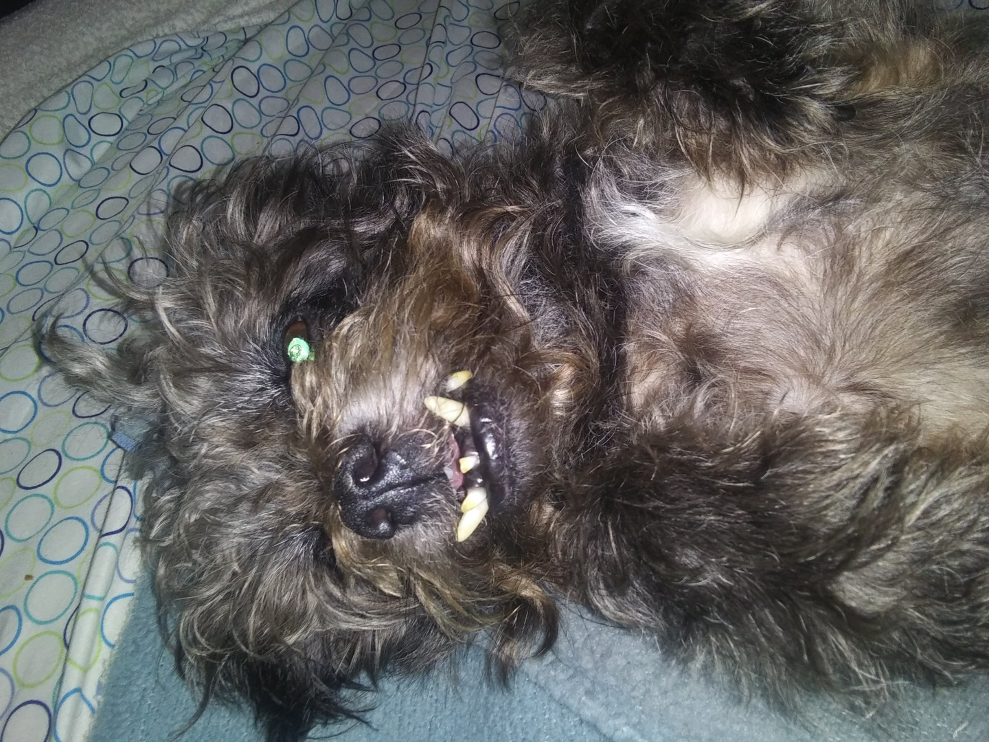 Dumpy be the best dog in the whole wide world he talks to me tells me he loves me and I tell him I'm sick he wants to take care of Mama