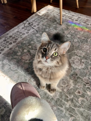 Smokey Joe’s most unique quality is that he is half blind. He has one beautifully smoky eye and one clear eye, and the contrast with his fluffy gray coat makes him especially striking. Dust Bunny has the most regal, feminine face. She is absolutely gorgeous, and on top of that she is fearless. My girl knows how to fight and is definitely a frisky one.