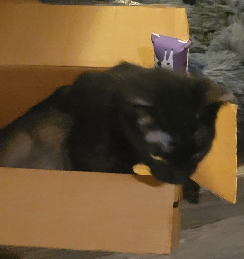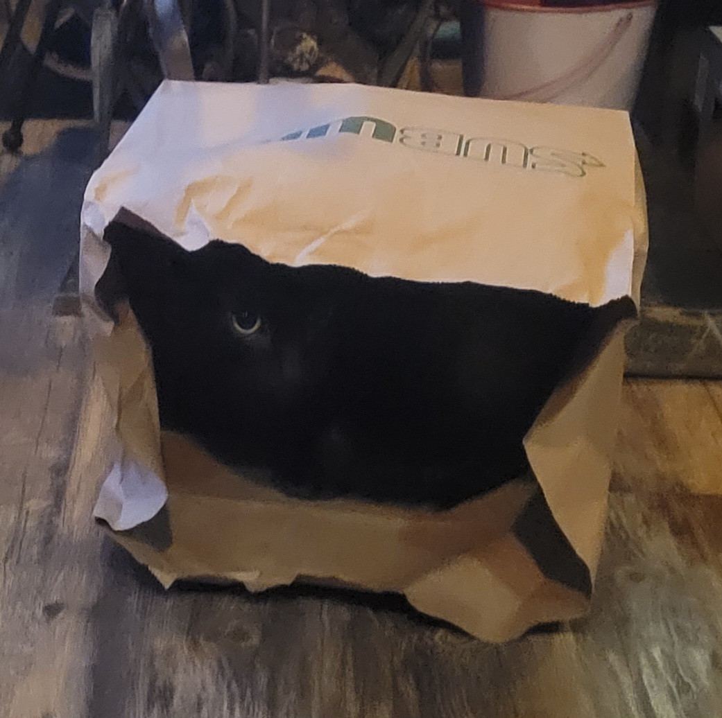 Dyna loves to roll in catnip and play with wrinkly toys & birds. Dyna loves paper bags & boxes. He loves watching the birds, squirrels and chipmunks out the windows