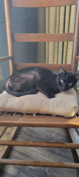 Dyna is a 4yrs old male black cat. Very loving and playfull. HE LOVES people. He runs to the door when people come over. He greets each pers