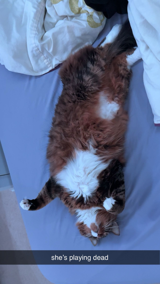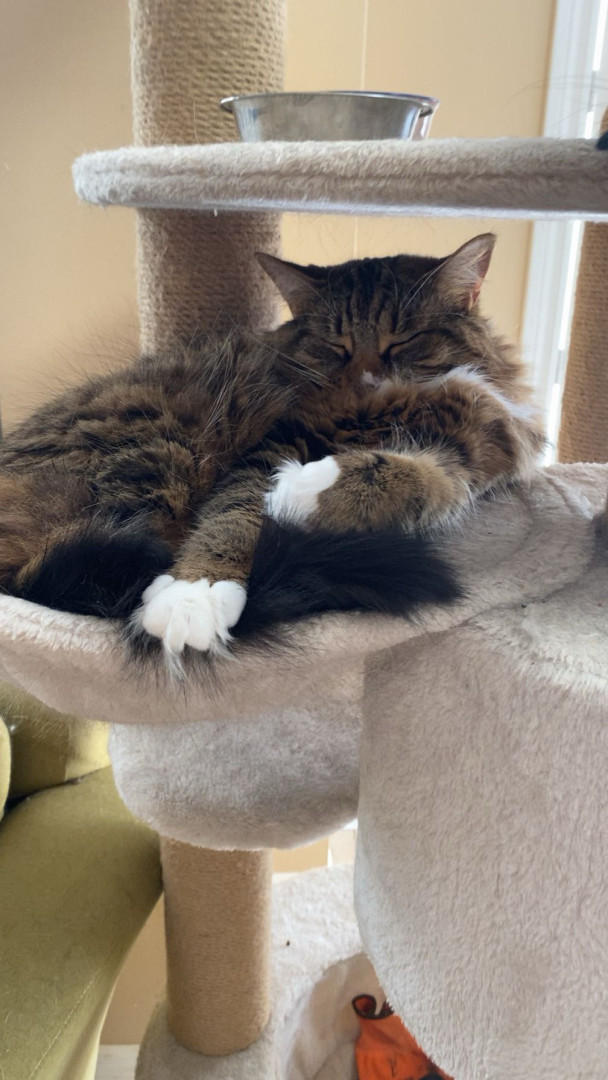 Echo is a big girl but doesn’t really like treats. She plays with our younger cat babies and sleeps a lot!!