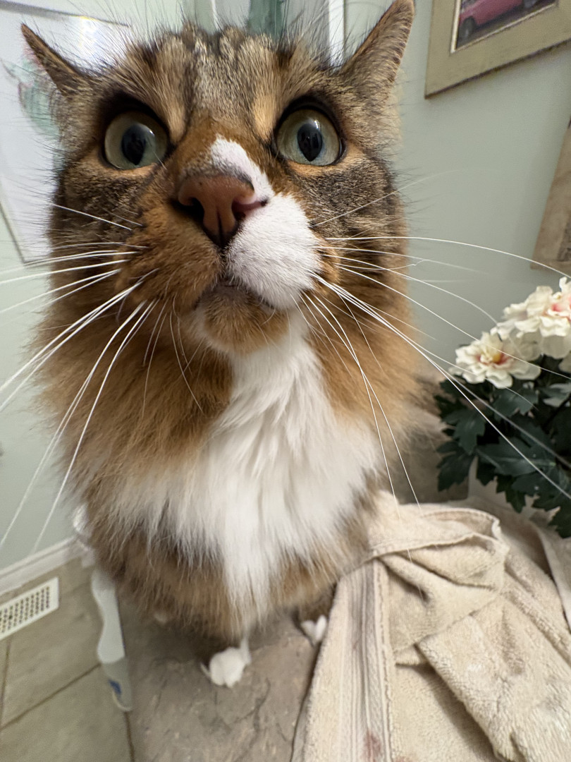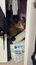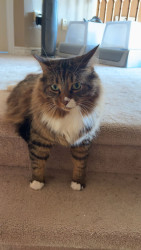 Echo is a big fluff ball who believes she is a lion. She is the empress of our house and watches over our door from the top of the stairs.