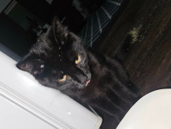 @WhiskerDramaMama Eclipse still suckles on all soft fuzzy things like my nightwear and blankets she greets all guests and cleans he