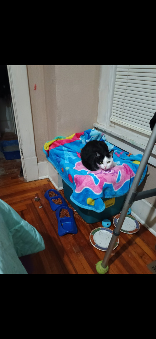 He is a mommaa boy . Love treats and toys. Misses his sister. Not a people person but mom and my son and the baby.hes a tuxedo cat.12 years