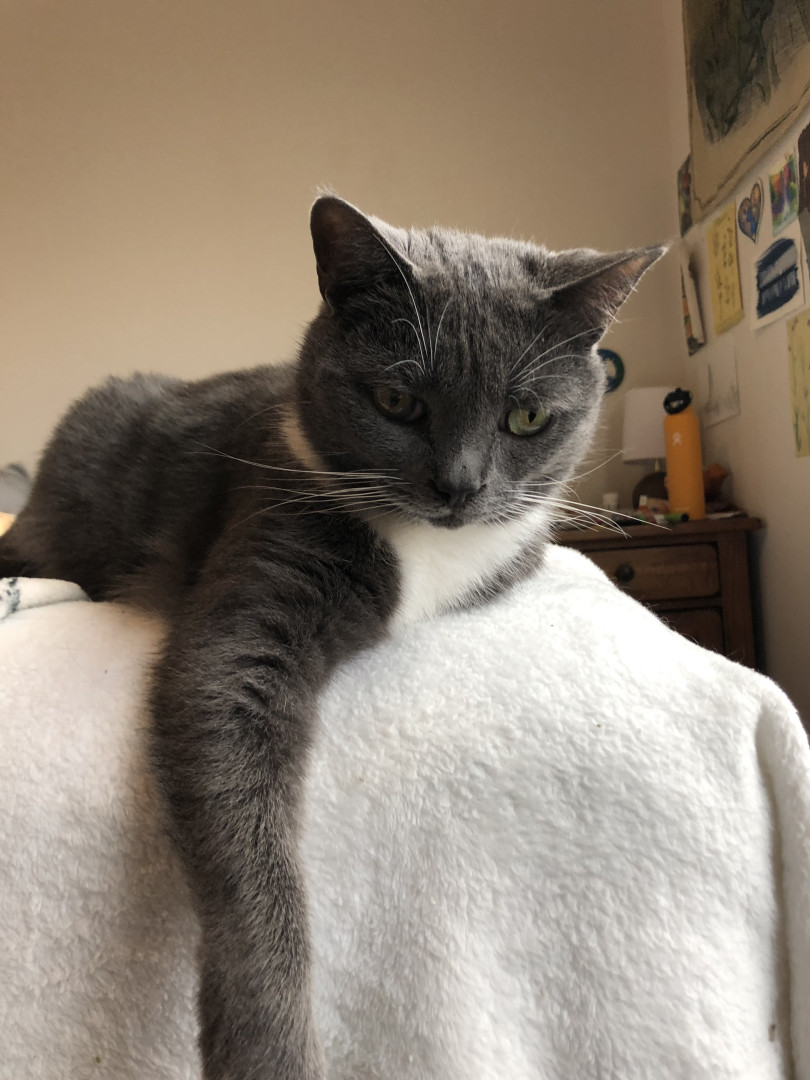 She is the most cuddly, beautiful cat who just wants to share the love. She is like a dog in the way she greets me at the door, begs for food, and follows me around the house.