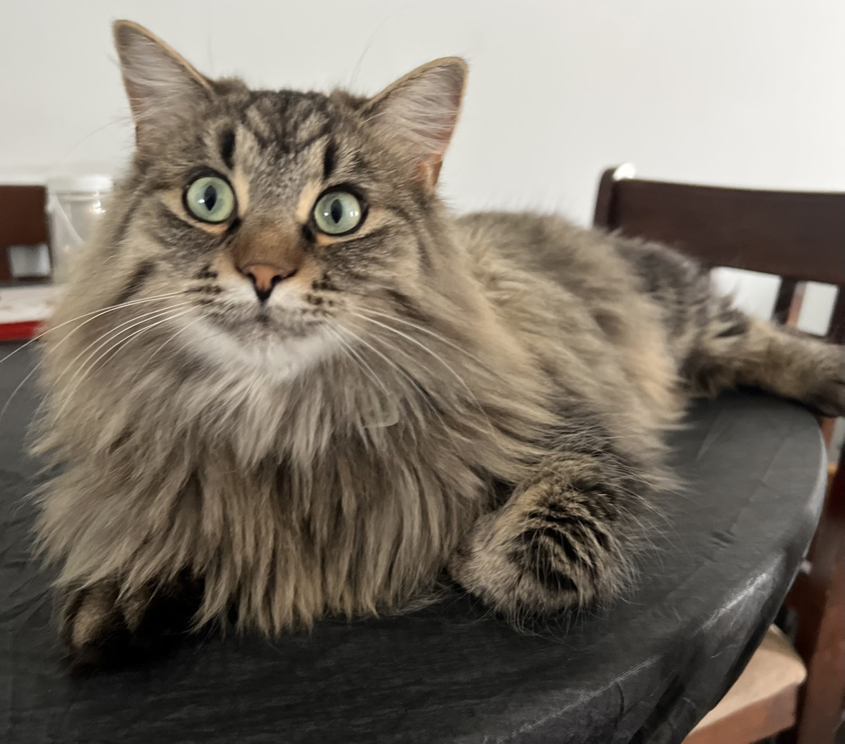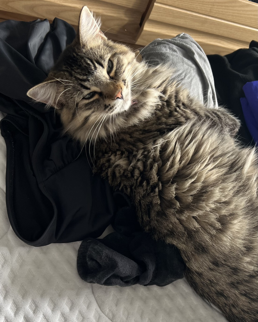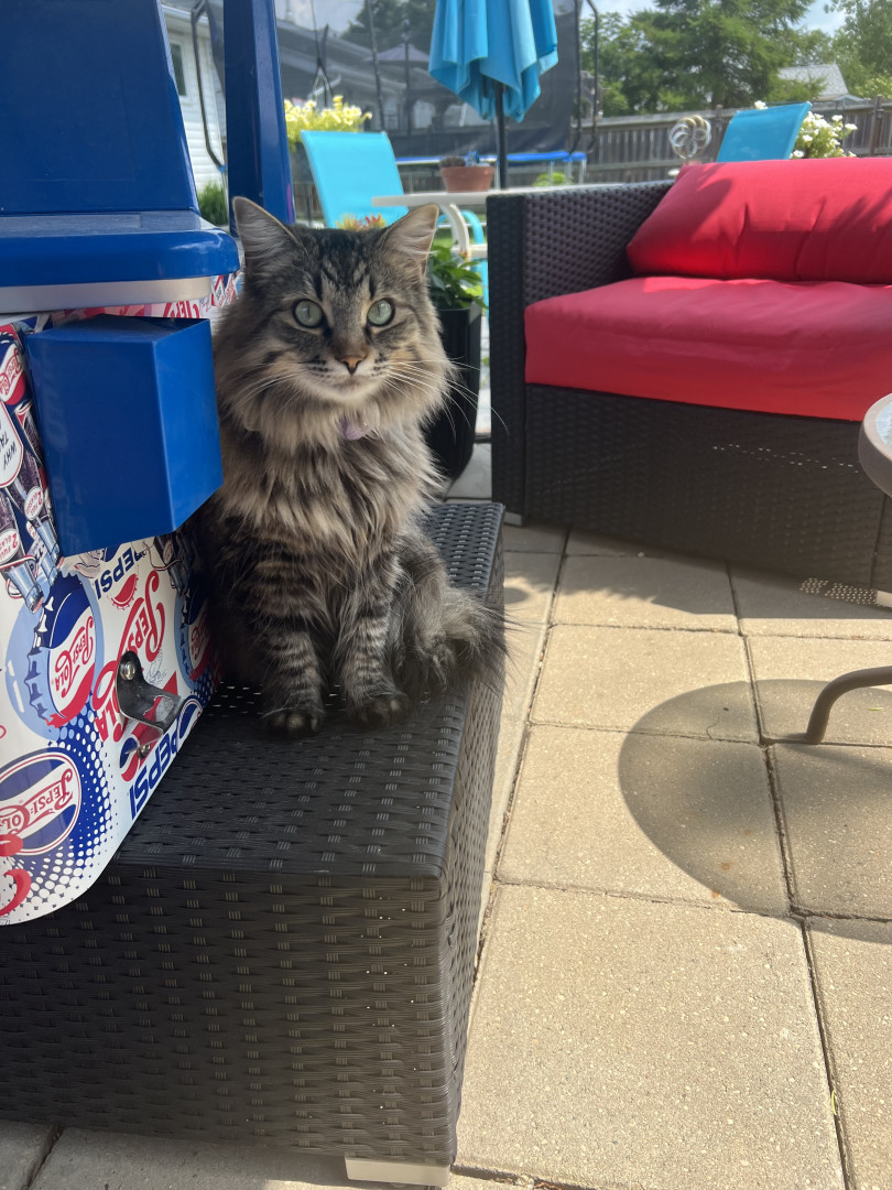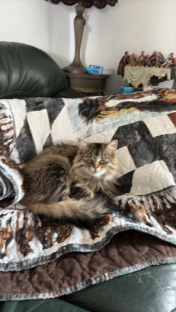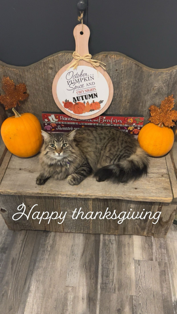 She should be America's favourite because she was just abandoned and froze to the pavement and her glowing eyes saved her on the highway that evening. She was a wet mess and now she is a part of our family and so sweet.