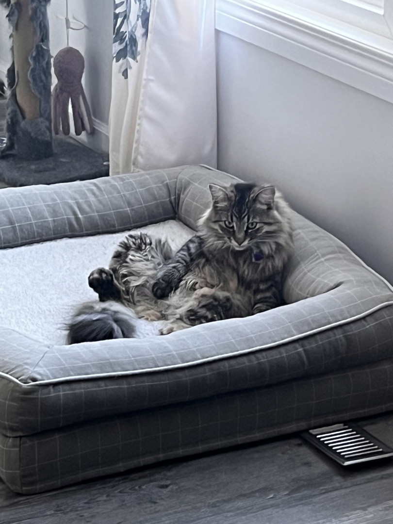 Cutest little lady. Found her frozen on the side of the road and could not seperate from her. She is always michevious but so darn cute!