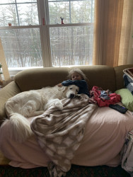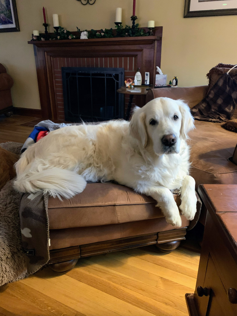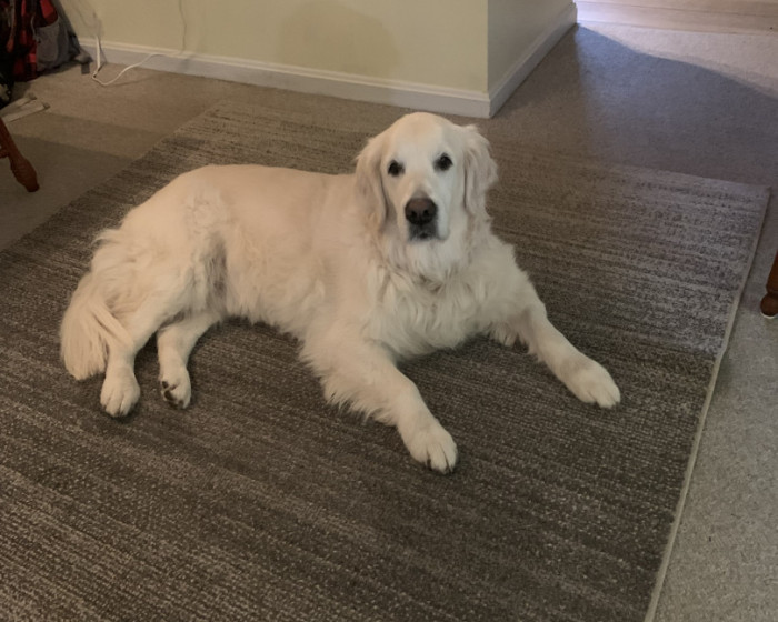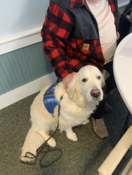 Eleanor has a sweet soul and was first trained as a service dog but since she loves to greet everyone, she was re-careered as a therapy dog