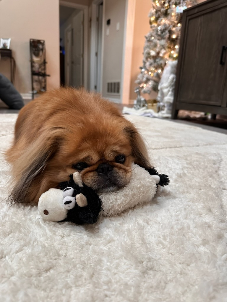 Learn MoreHis stuffed hedgehog and chicken. His favorite treats are baby carrots, cheese and whimzee dog bones.