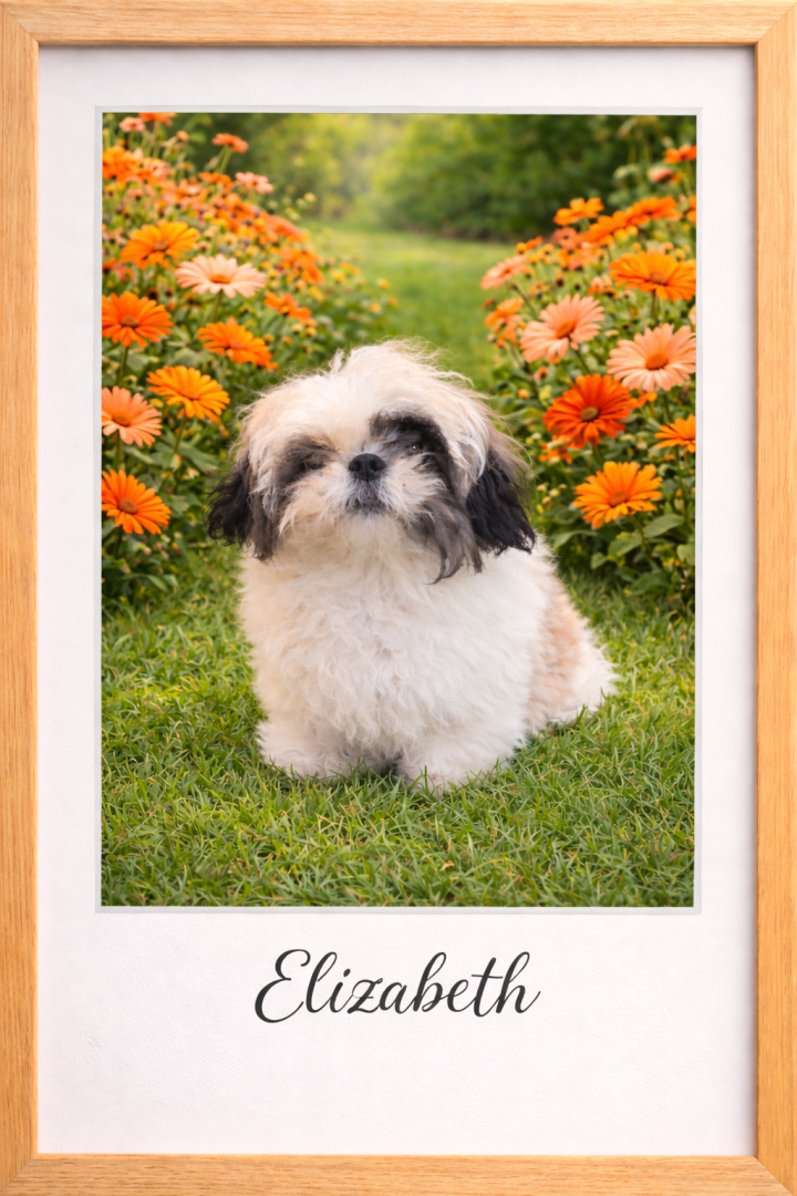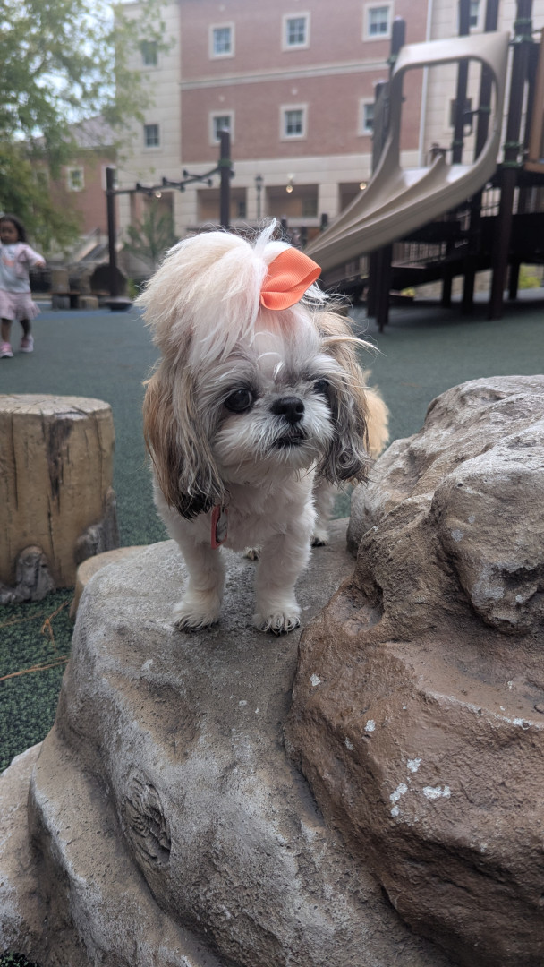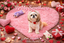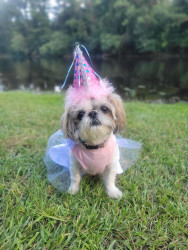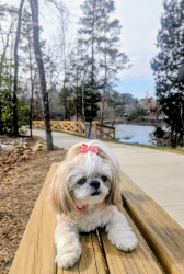 Elizabeth is a 13 year old, 8 lb Shih Tzu. Her sweet temperament loves everyone she meets. She enjoys stuffed animals, walks, and cuddling!