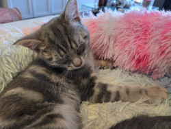 Receive Text UpdatesElle loves playtime more than treats. She plays with shoelaces and crumbled paper, as funny as it sounds, she likes that more than the expensive ir usual cat toys I have for her.