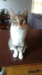 She was a stray kitten I found in a parking lot. I brought her home. She's just the sweetest most hyper thing ever.