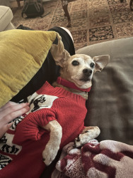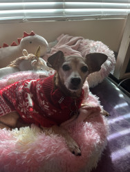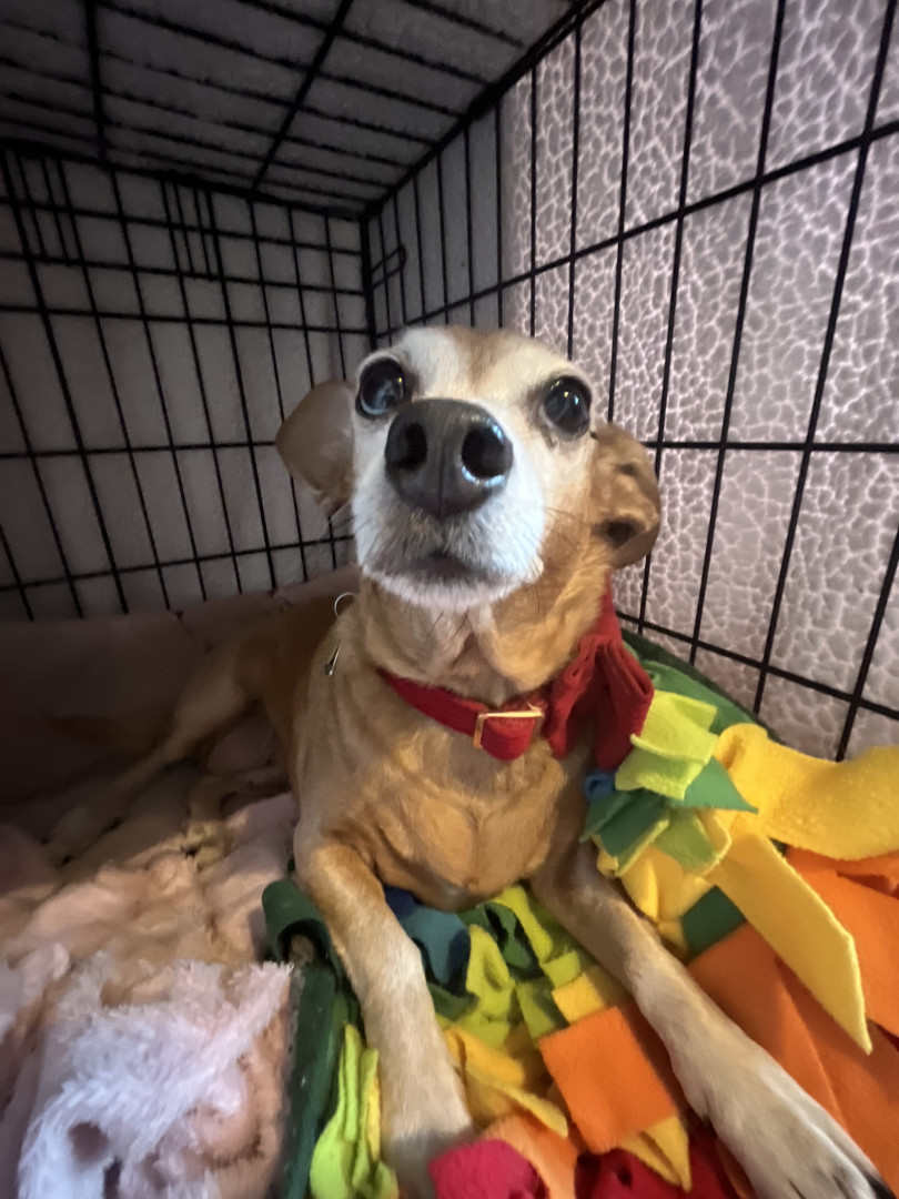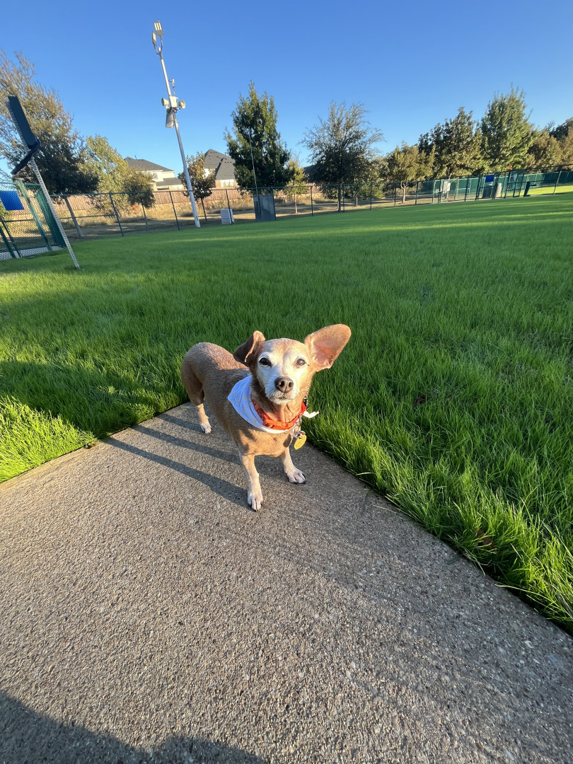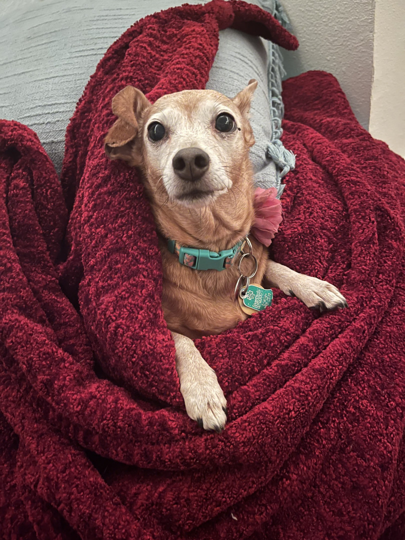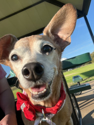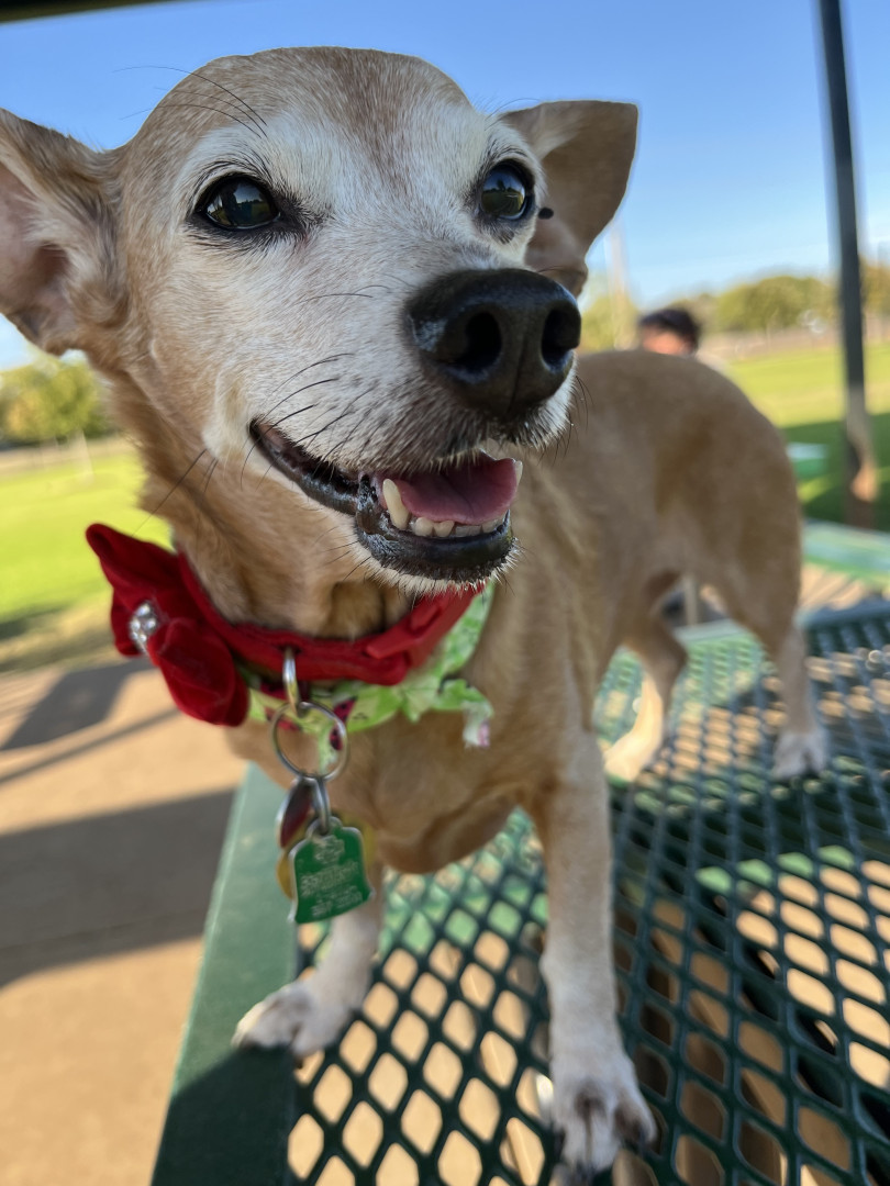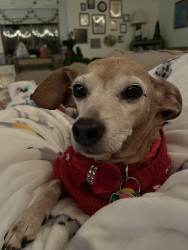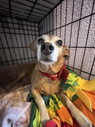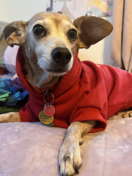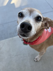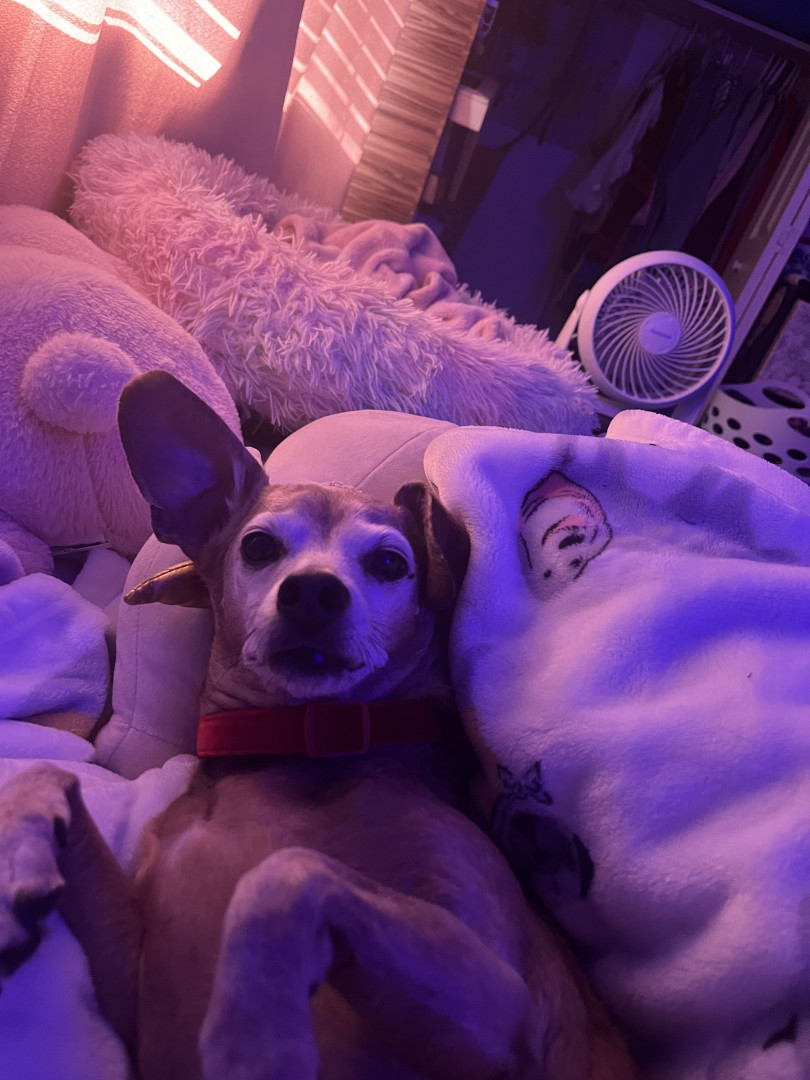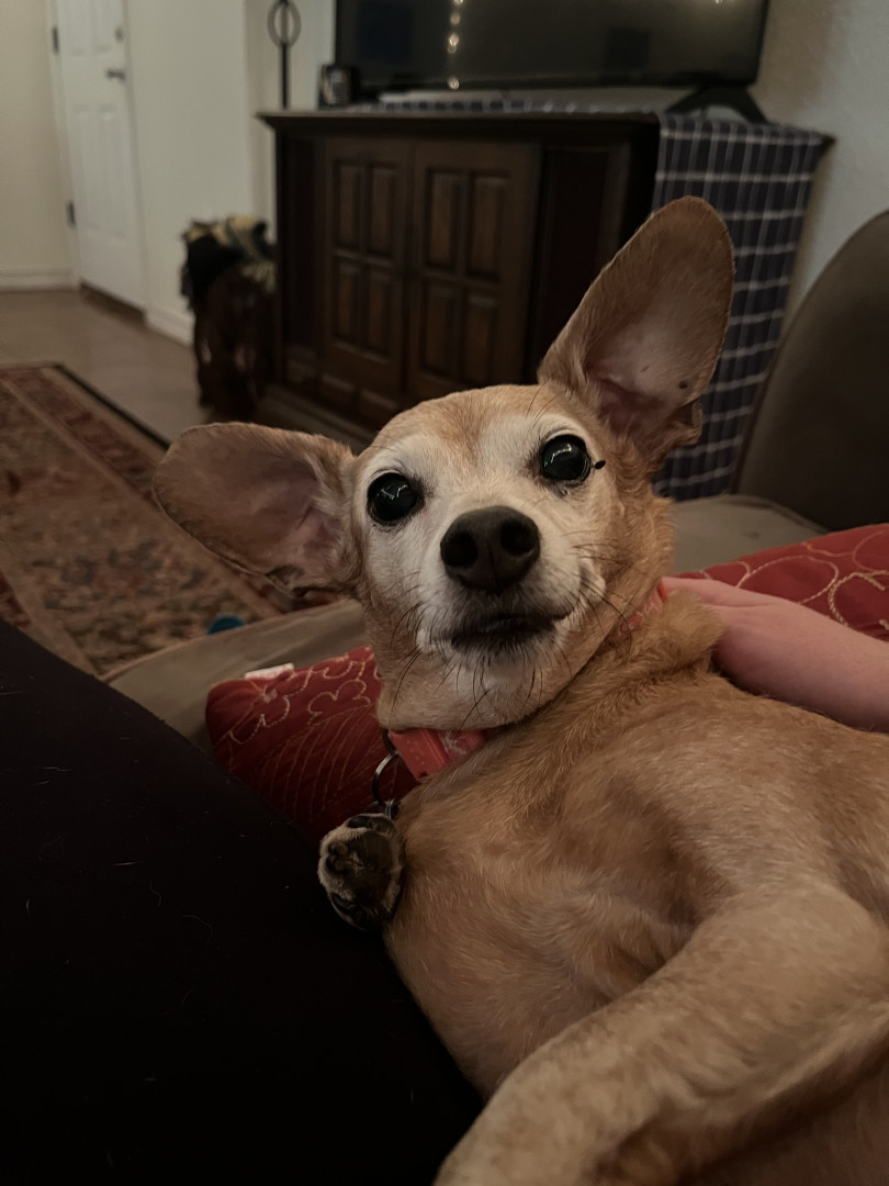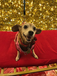 Ellie is a sweet little chiweenie who loves to snuggle and get belly rubs. She also enjoys taking walks and sunbathing.
