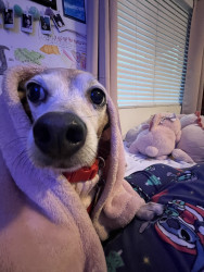Ellie’s unique quality is being able to snuggle up anywhere cozy and nest in the pillows.