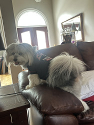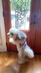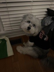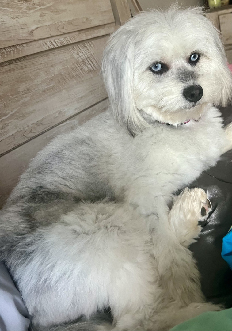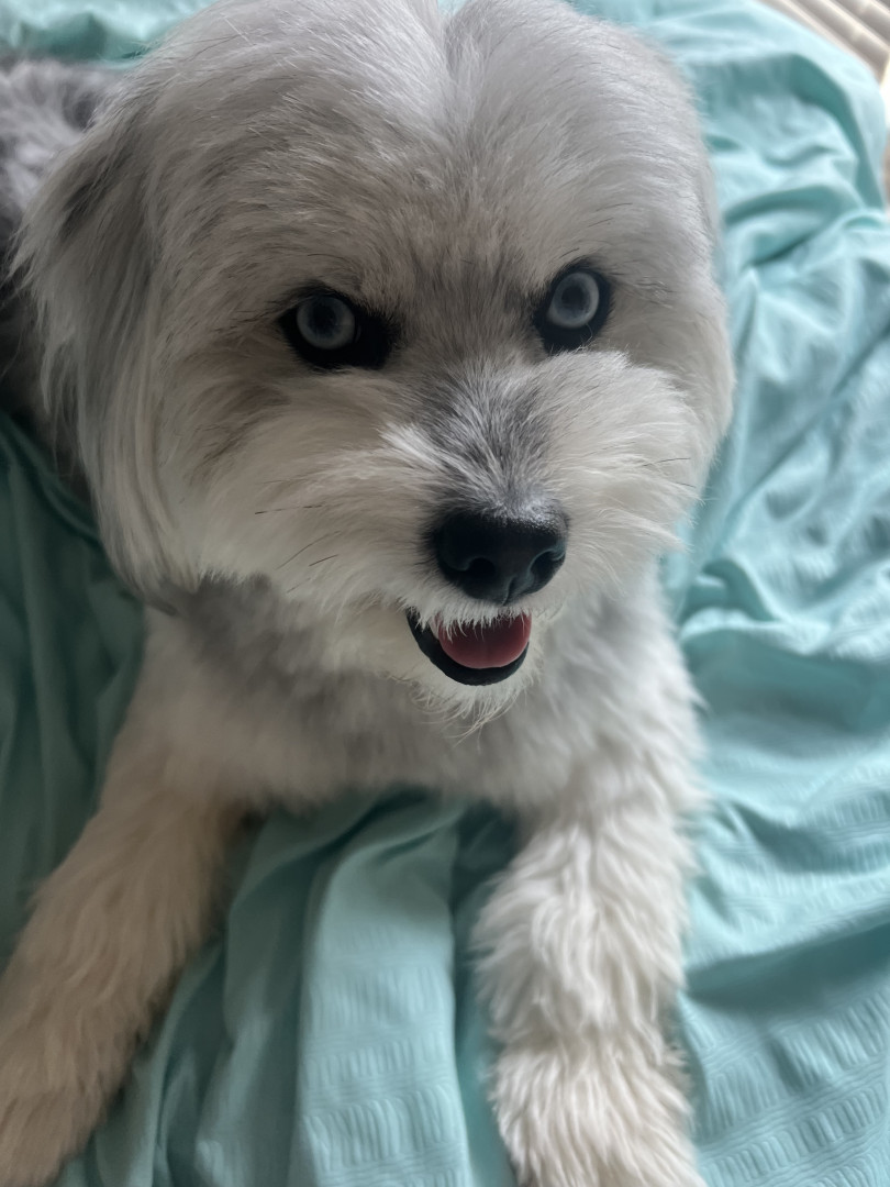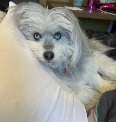 Eloise is a beautiful pomski-doodle girl with bright blue eyes. She’s almost a year and a half. She loves tennis balls, cheese and people!