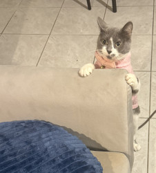 Elsa is a 1 year old adorable and curious cat! She was adopted from our local animal shelter. She likes long naps and getting into boxes!