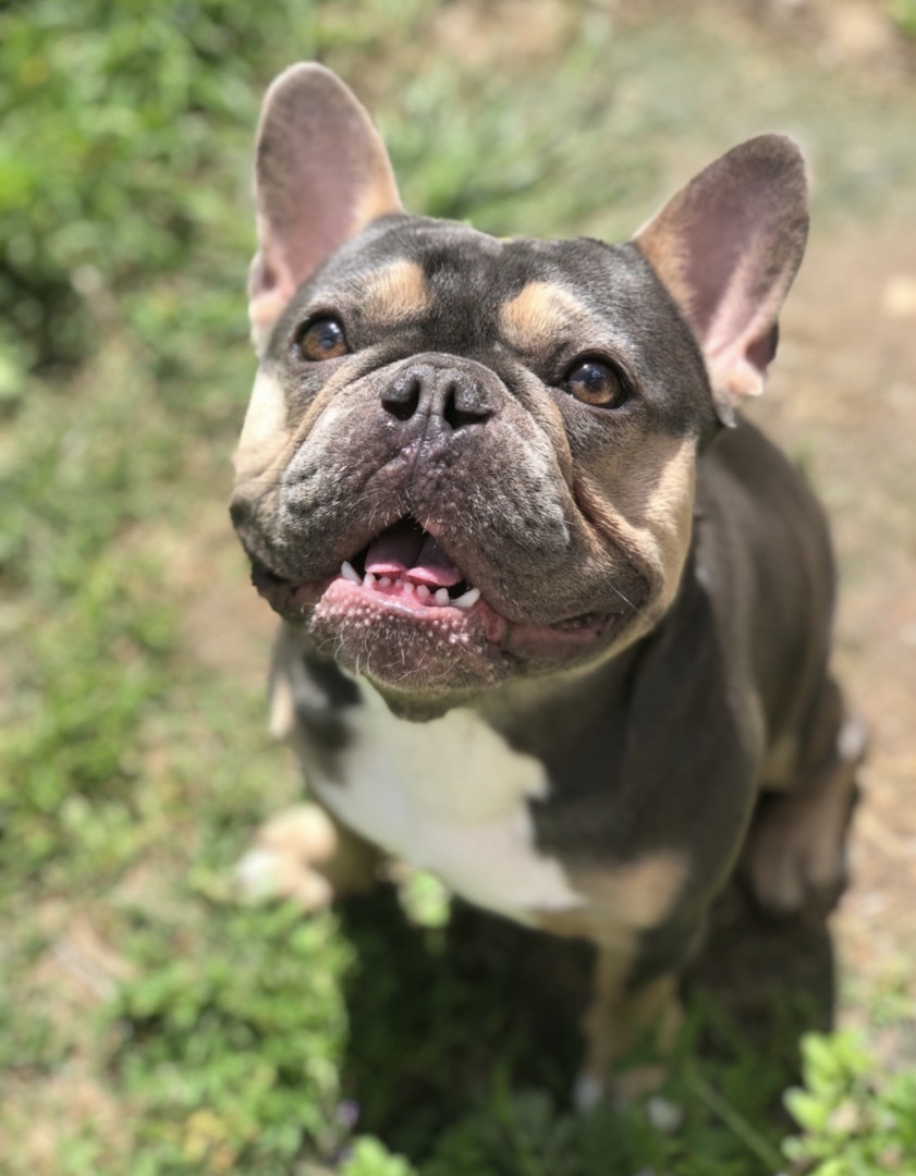 Elvis is a Purebred Blue & Tan Tri French Bulldog, who many say is the real life Disney Animated Character Stitch!!