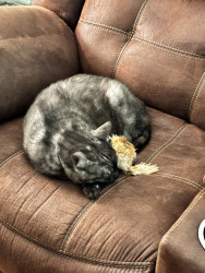 Elvis is an 18lb smoke gray tabby who loves to snuggle!