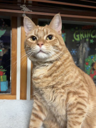 Ember is a unique 2 yr old female orange tabby. She is a rescue that was found abandoned. Although she can be mischievous she’s a true joy!