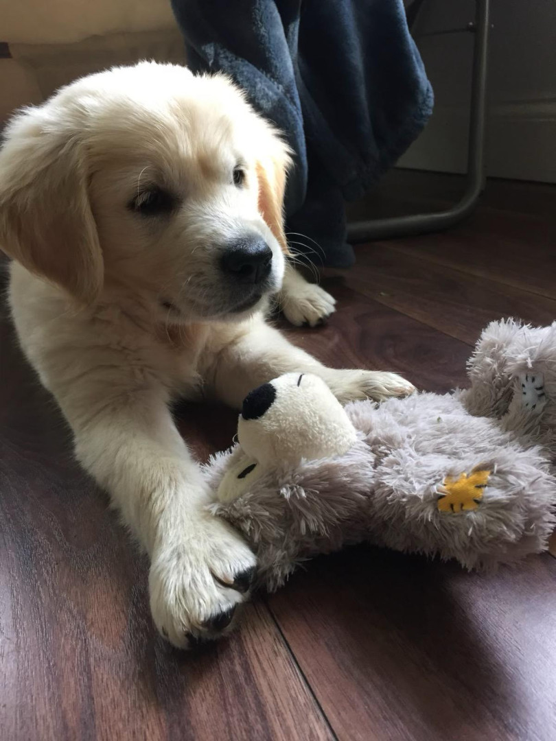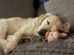 Learn MoreEmmy’s favorite toy is her stuffed piggy, and broccoli is her favorite treat! She always brings us a stuffed toy when we come in the door, and she likes to cuddle her piggy and fall asleep with it in her mouth. Emmy is a fan of any treat, but she gets especially excited about broccoli!