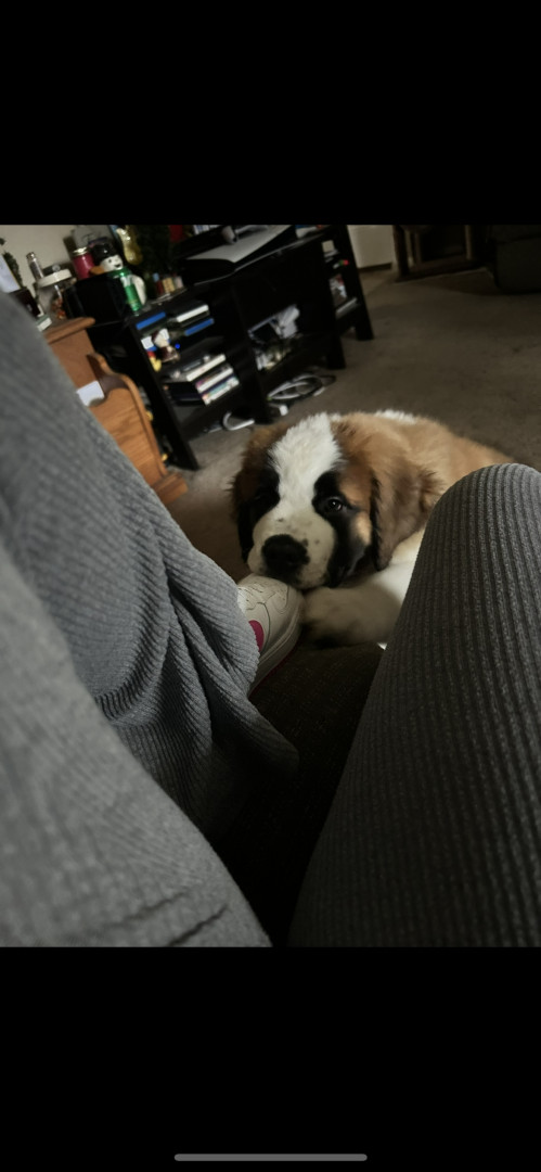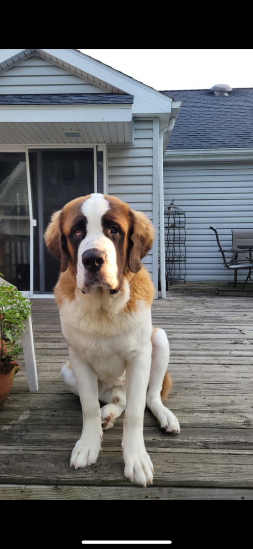 Engine is our big, fluffy Saint Bernard with the heart of a teddy bear and the energy of a puppy on turbo mode. He doesn’t just run — he zoo