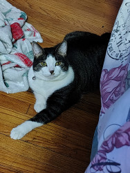 Enoki is also a rescue from the local animal shelter. She's very loving and affectionate and loyal to her owner and she loves her belly rubbed and loves sleeping with her humans on the bed.