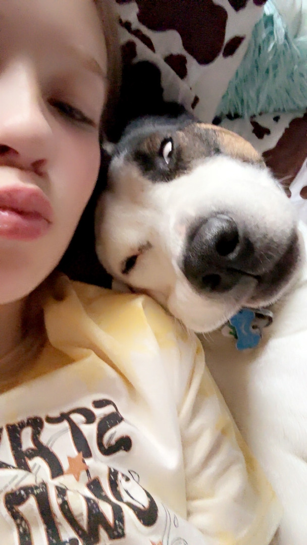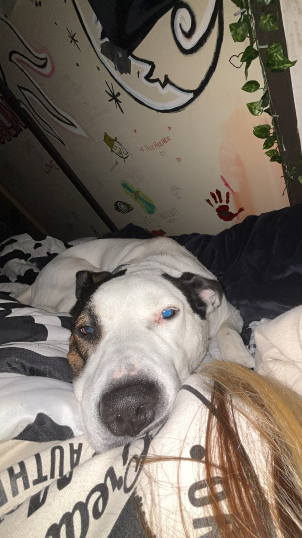 Enzo is a goofy dog, he is 3yo and LOVES to cuddle. He sleeps like a human, he loves to play,is always warm and welcome to new people