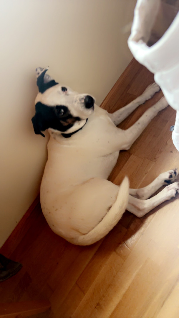 He’s very sweet and i think he is a cute looking dog, very unique too! He is a pit mix with we think a dalmatian!