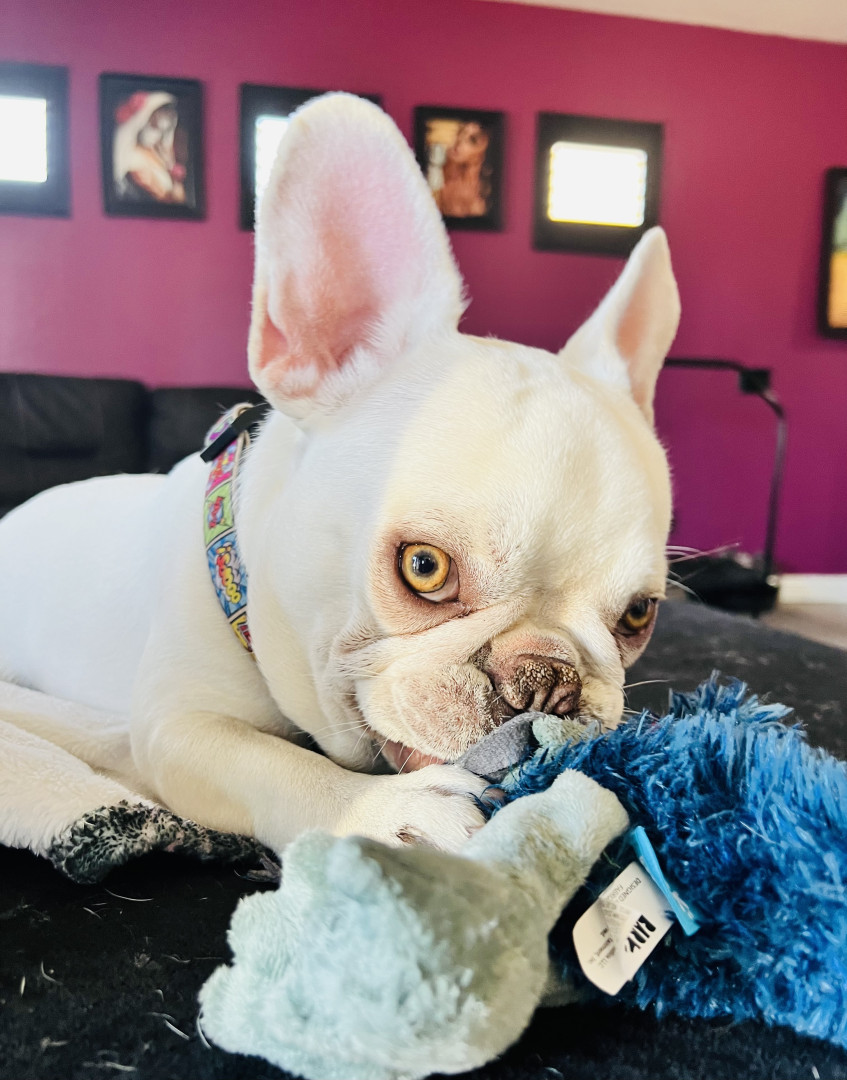 Escobar is the sweetest mini French Bulldog you’ll ever see. He has such a fun personality and loves long walks on the beach.
