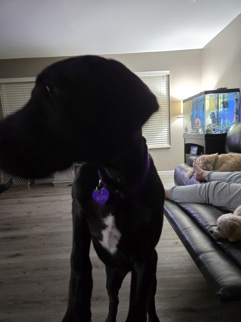 She a beautiful Great Dane Puppy, full of energy and life.