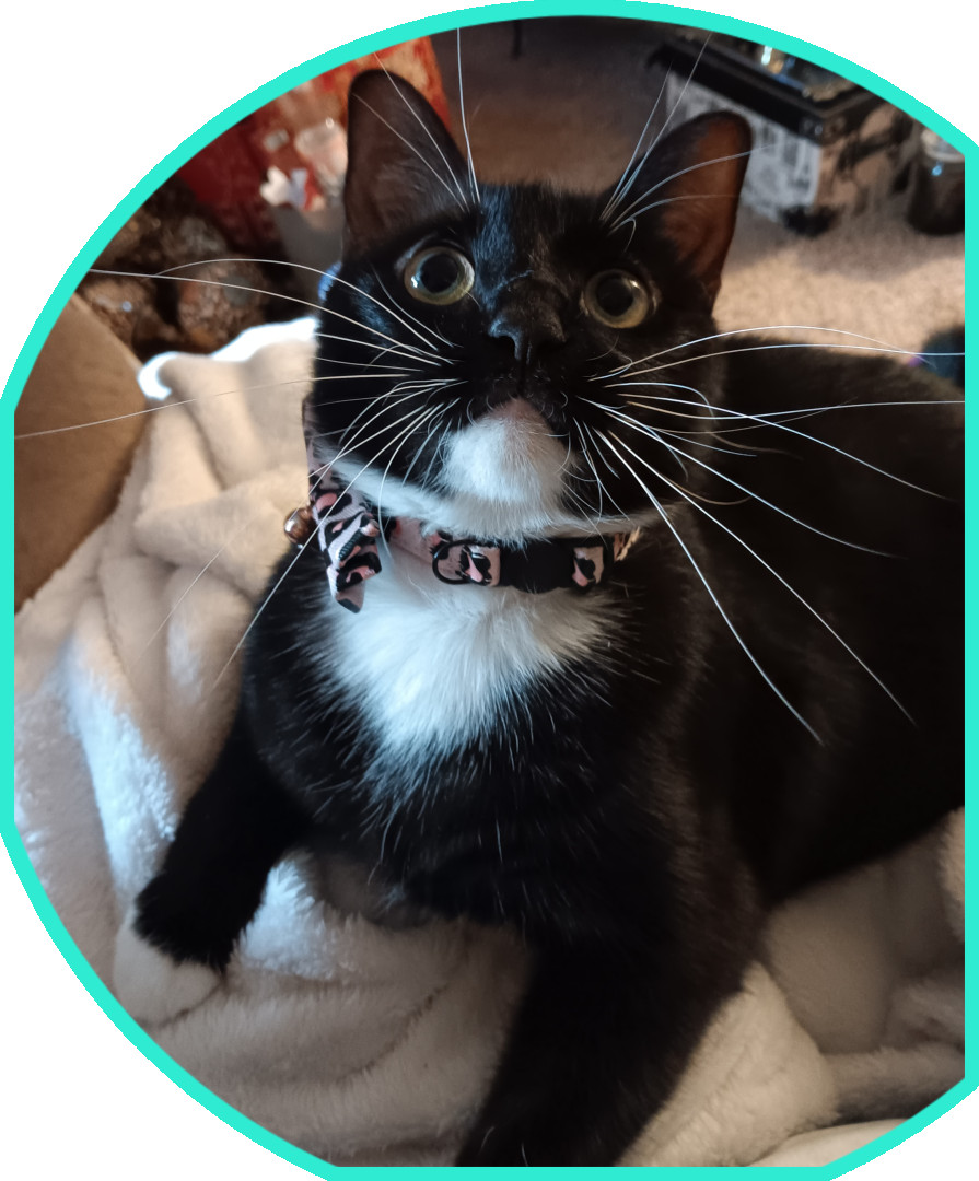 Oh, because she is the sweetest, funniest and loving fur baby I've ever had. Oh, she also came from a very large kitty family and looked like a noodle when I got her. Now, she is so fluffy and filled in that you wouldn't even know that she was like that before.