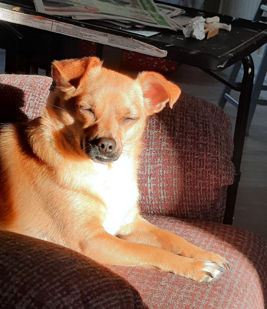 Evie is a rescue pomchi with lots of energy and lots of love. She loves going on walkies, and will play fetch with almost anything.