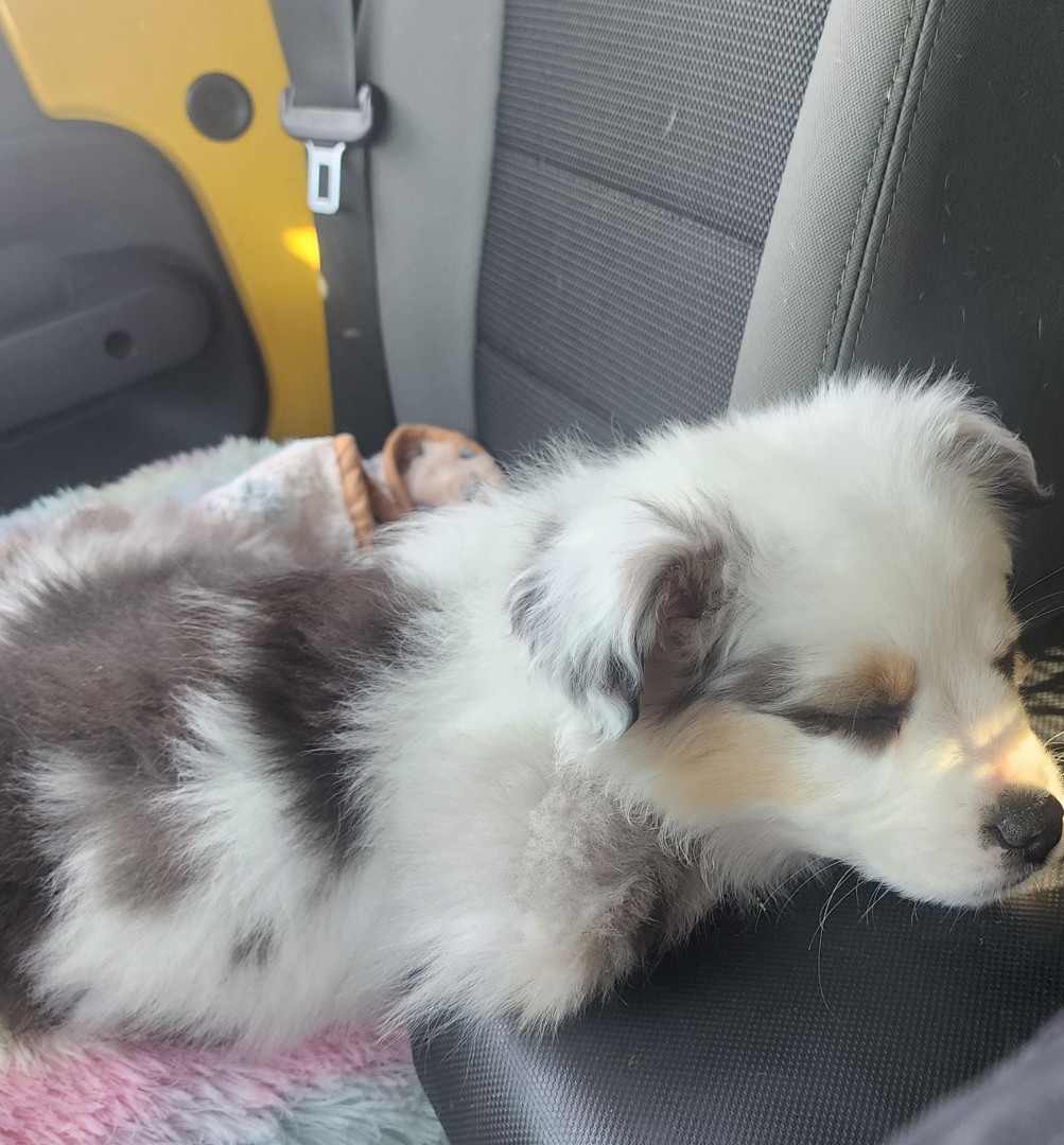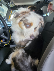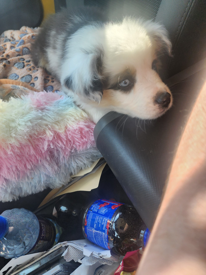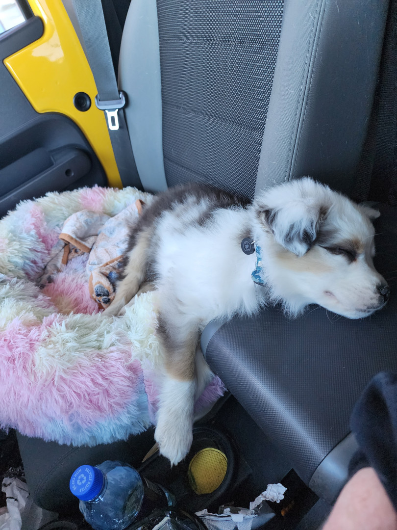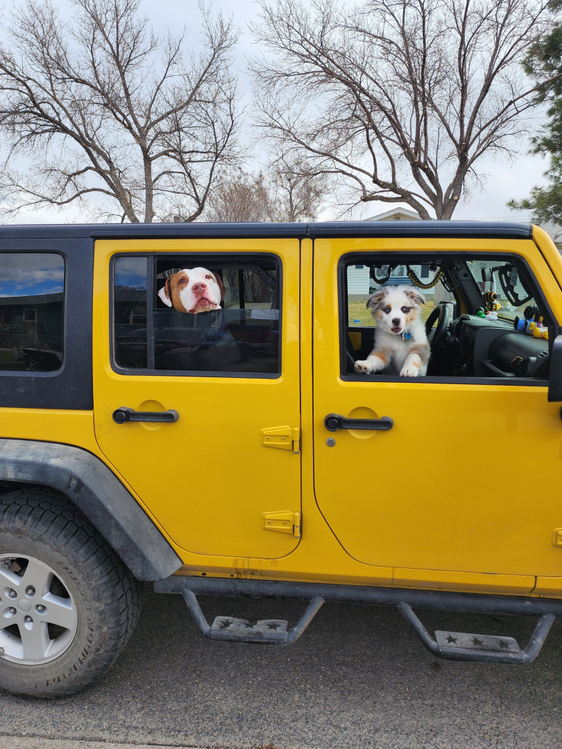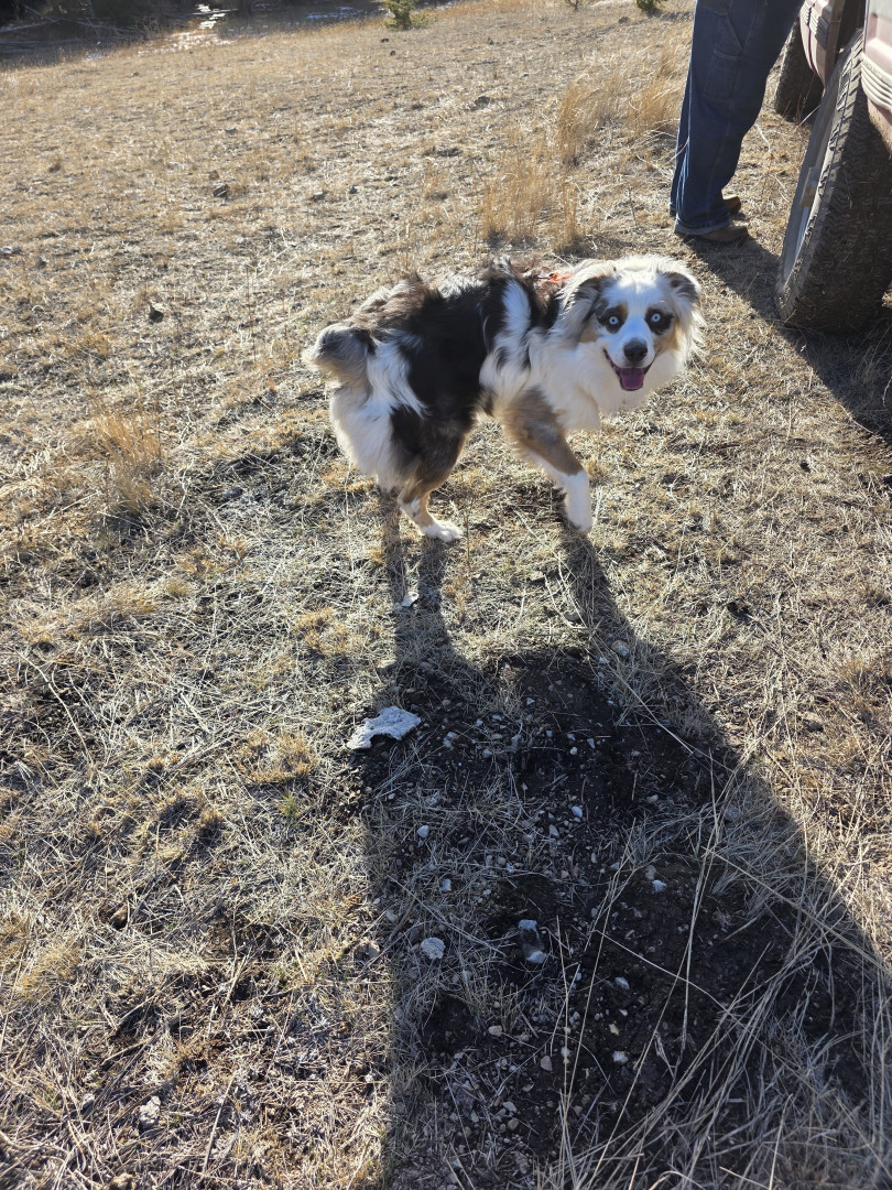 Fafnir is a 10 month old miniature aussie who thinks he a pitty loves riding around in my jeep exploring the mountains and his daily zooms