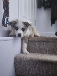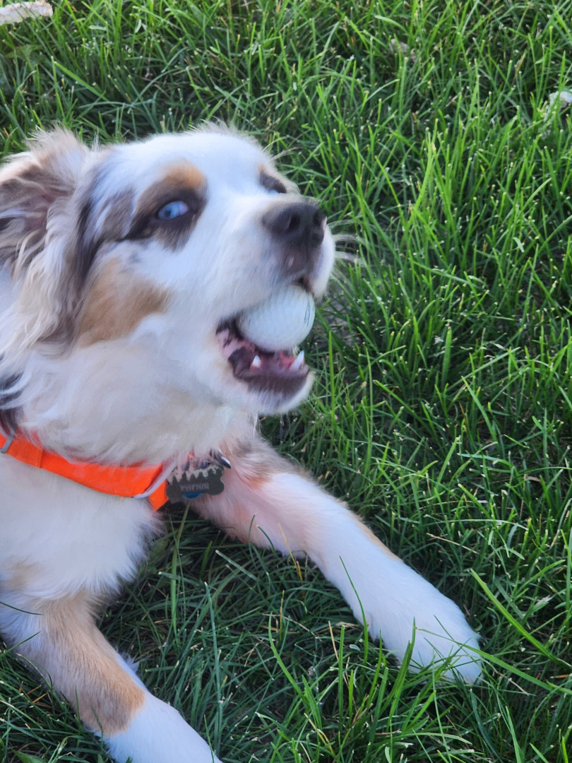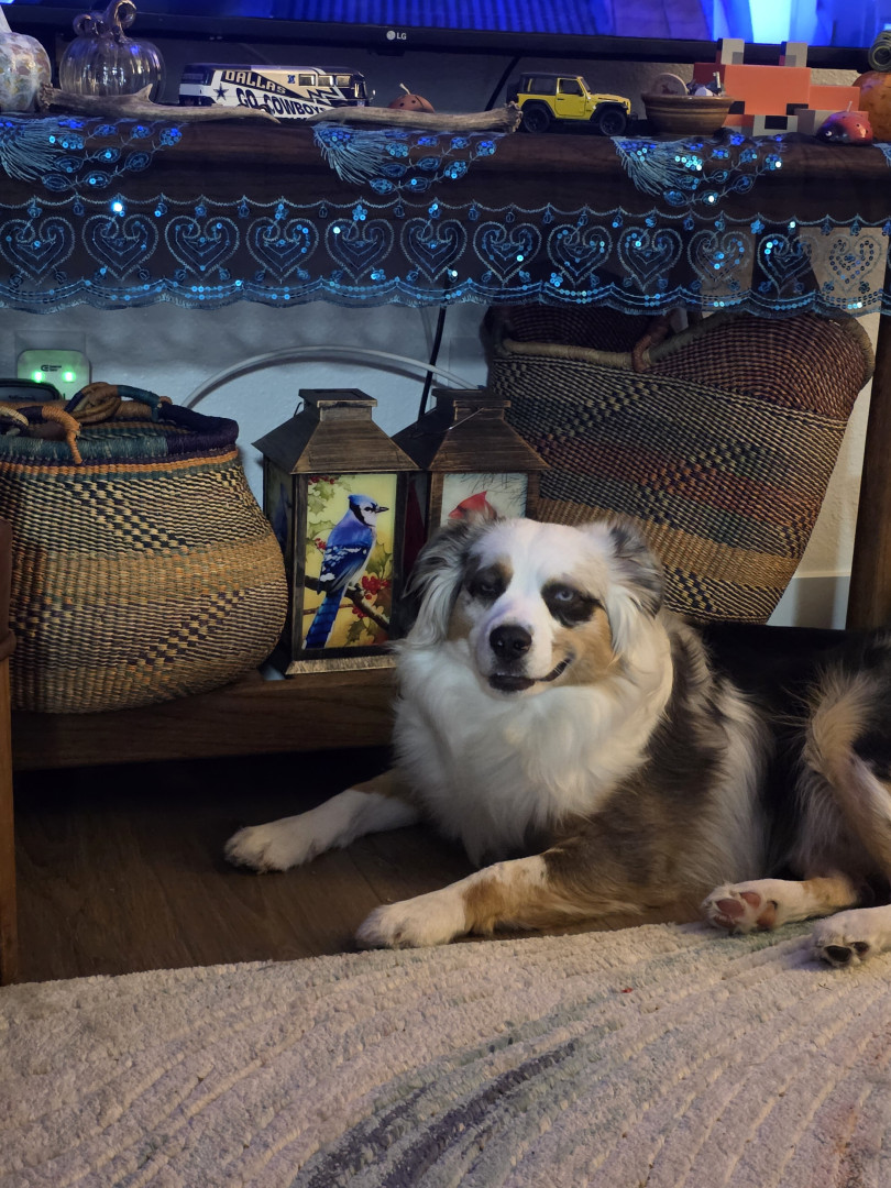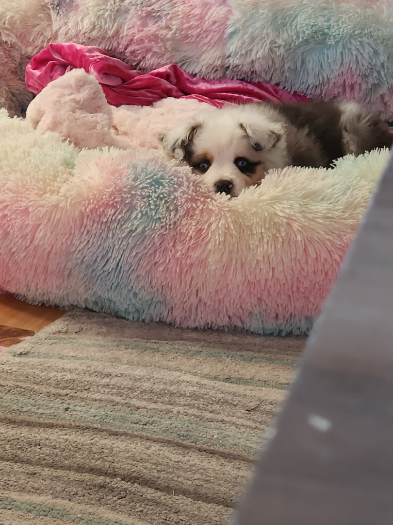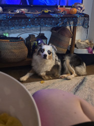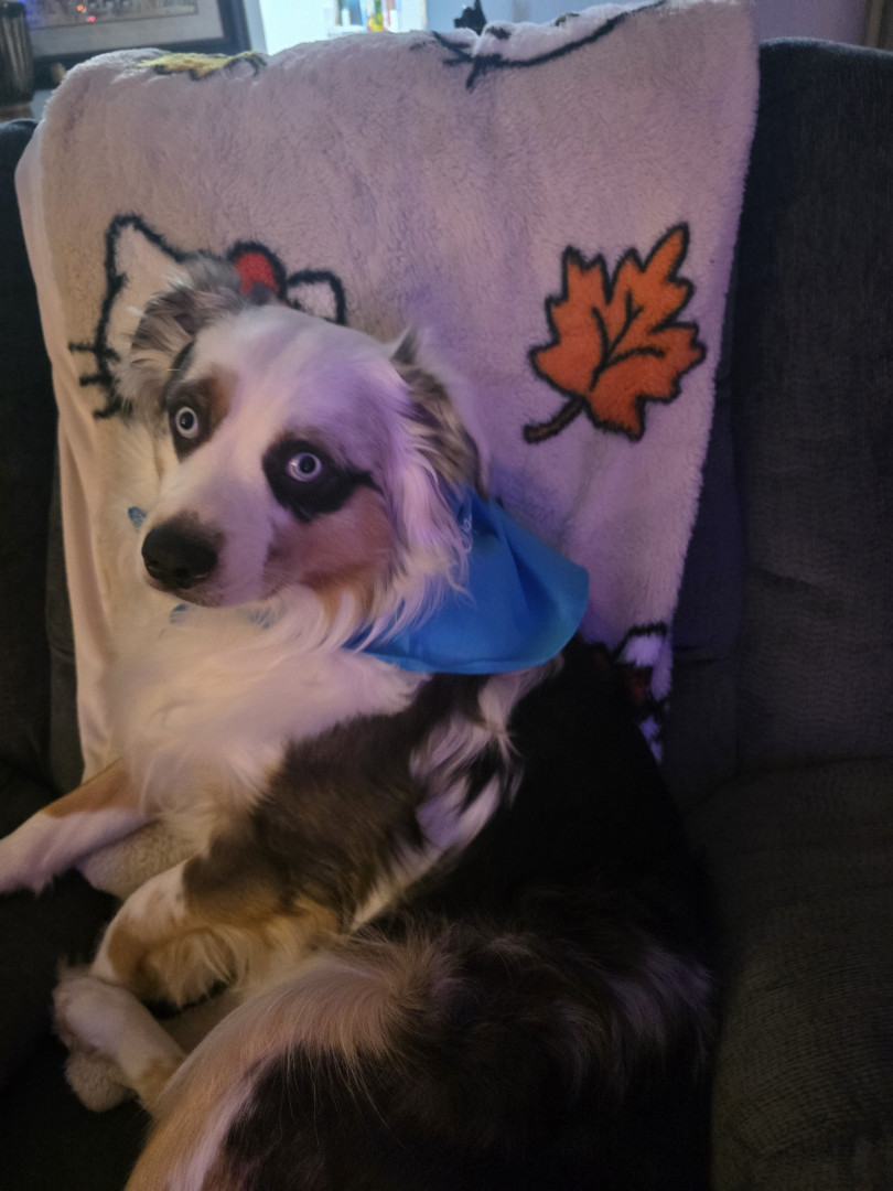 Fafnir is a 10 month old miniature aussie who thinks he a pitty loves riding around in my jeep exploring the mountains and his daily zooms