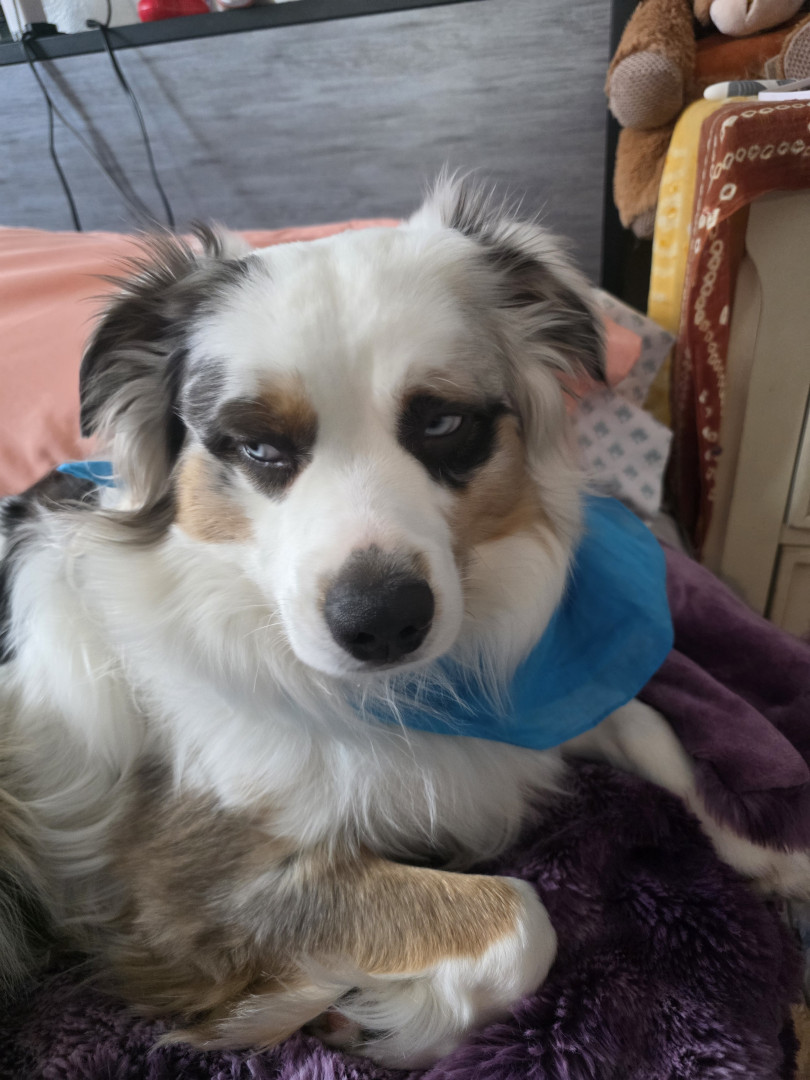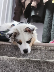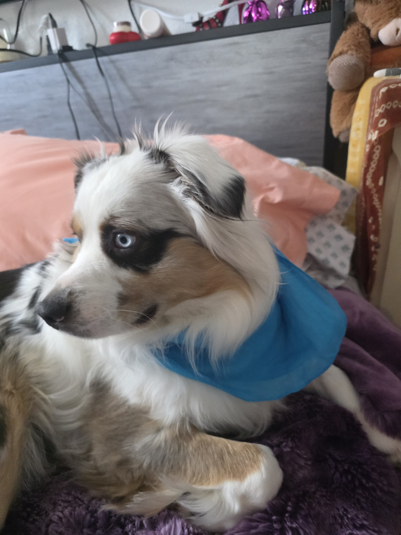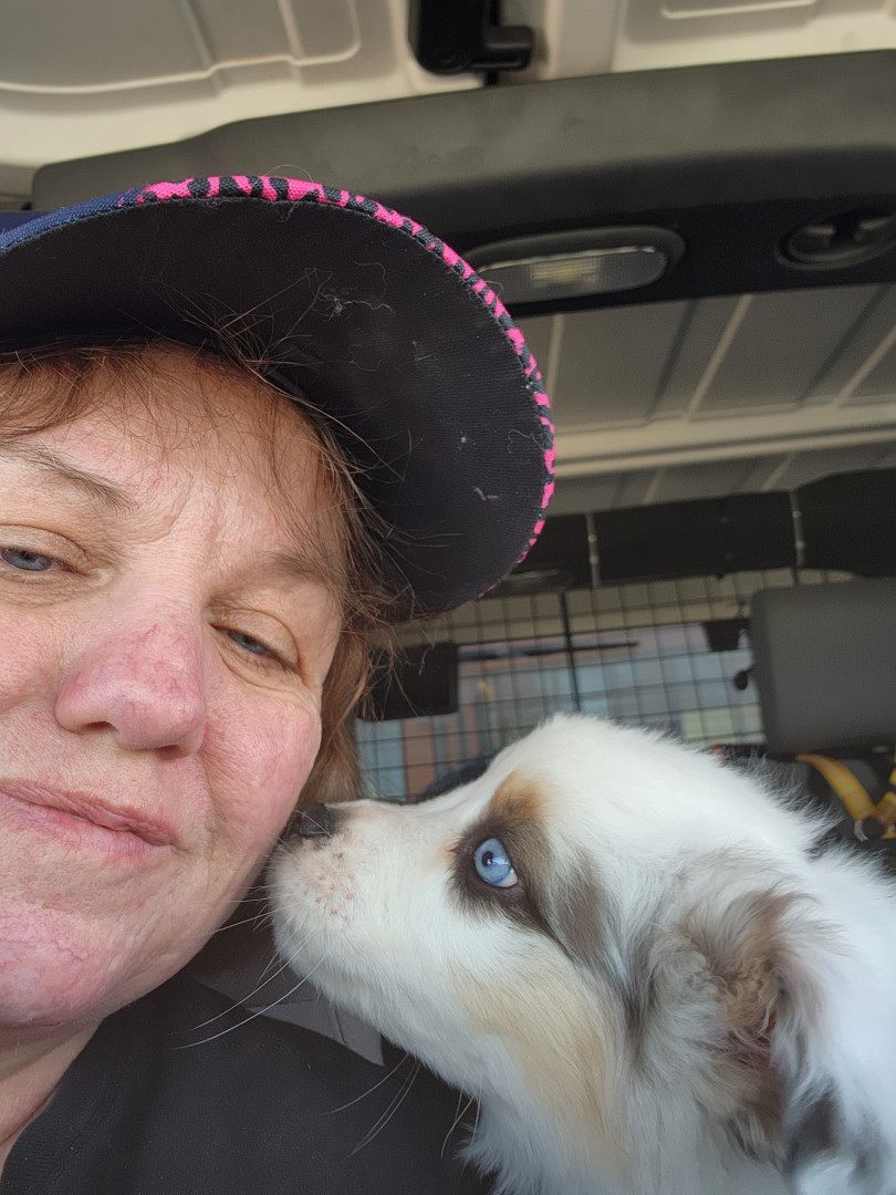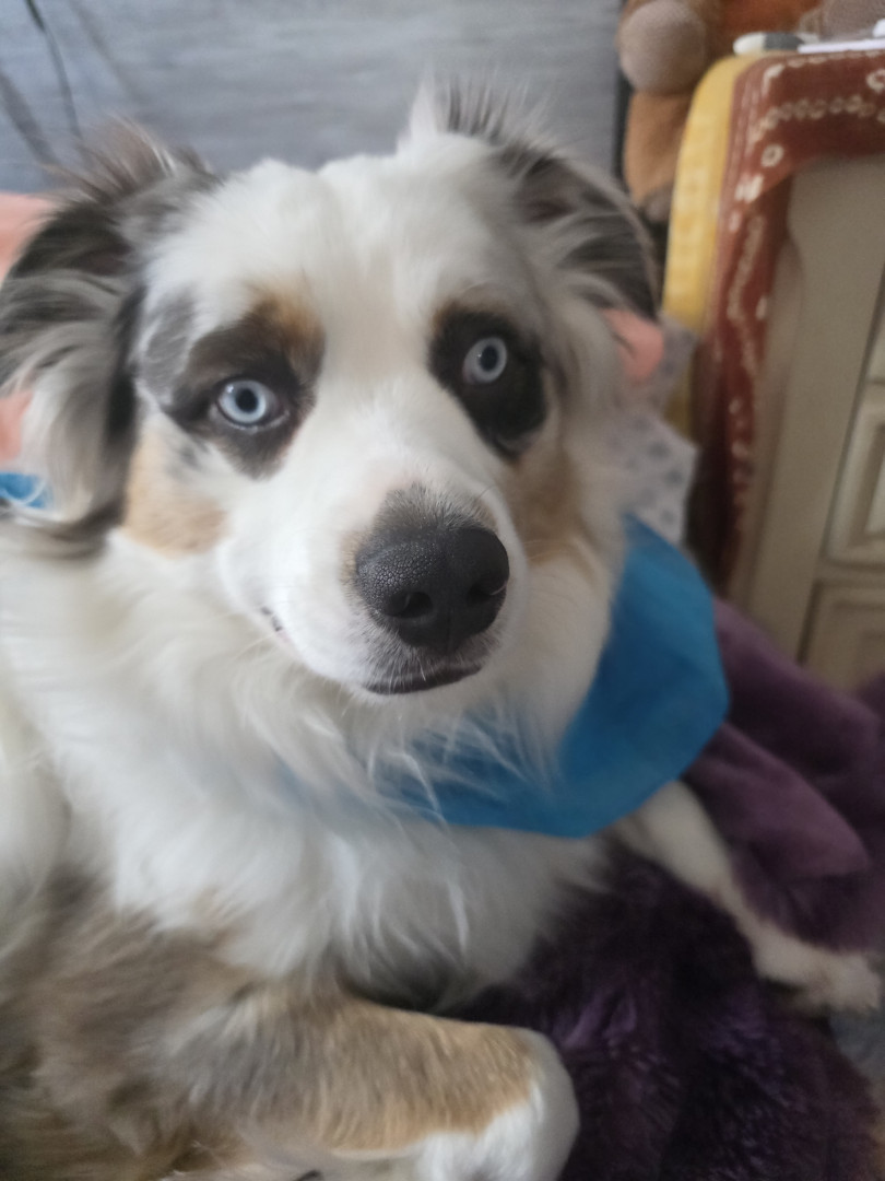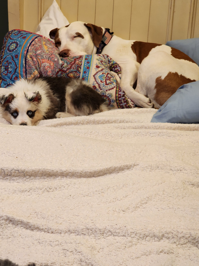 Fafnir is a 10 month old miniature aussie who thinks he a pitty loves riding around in my jeep exploring the mountains and his daily zooms