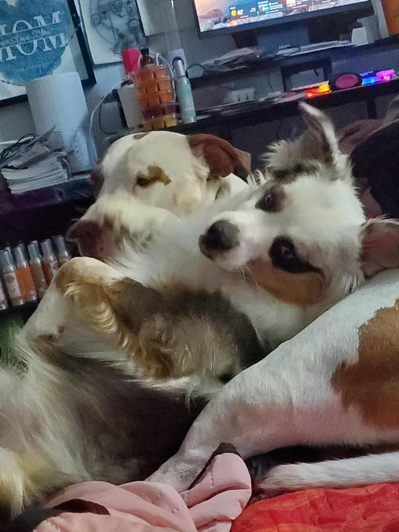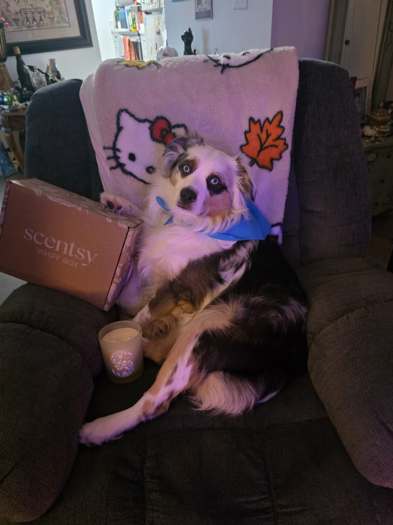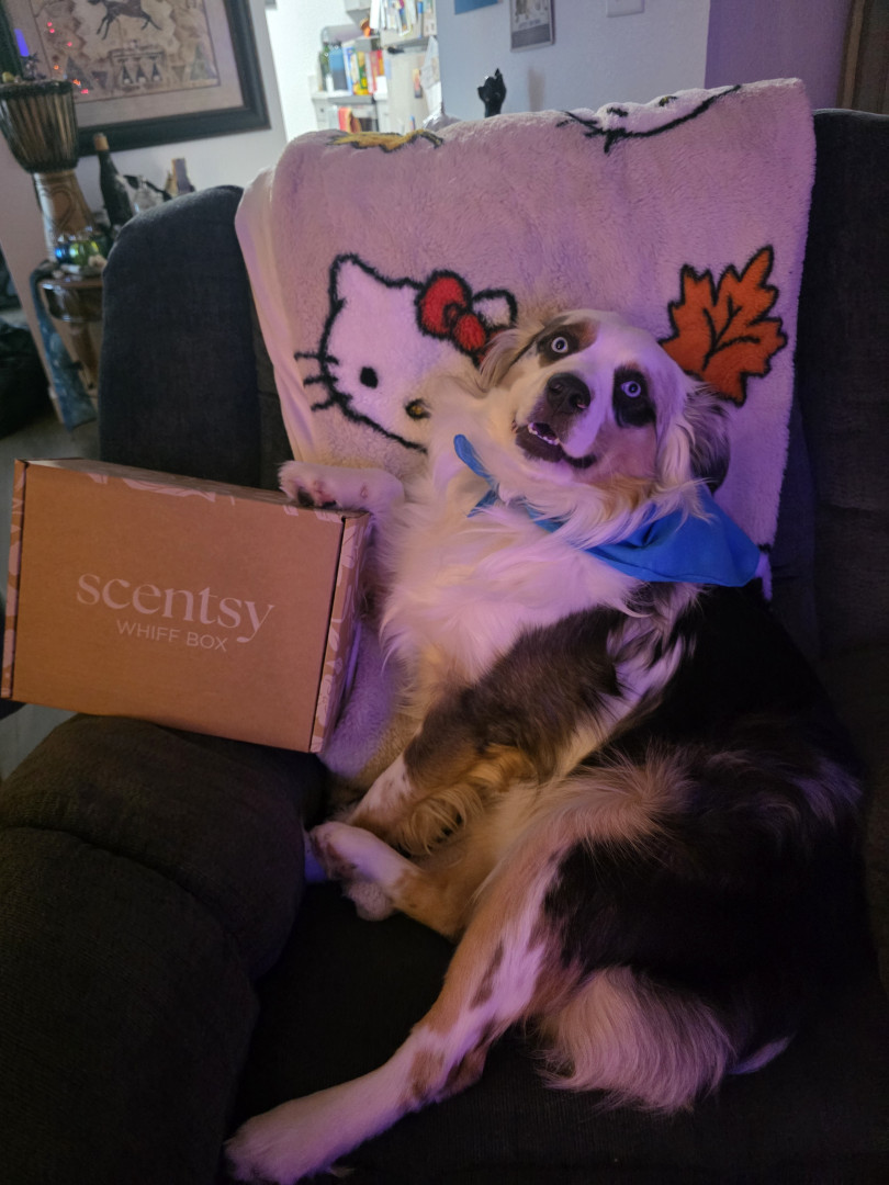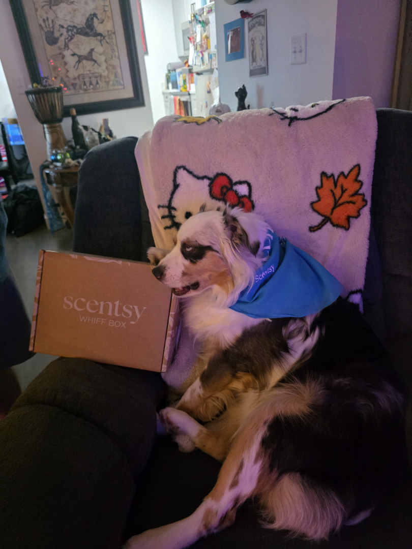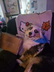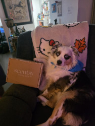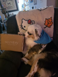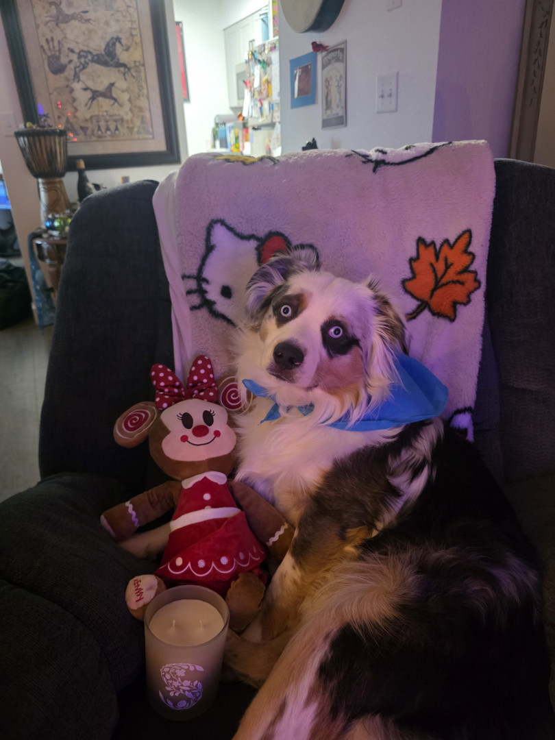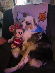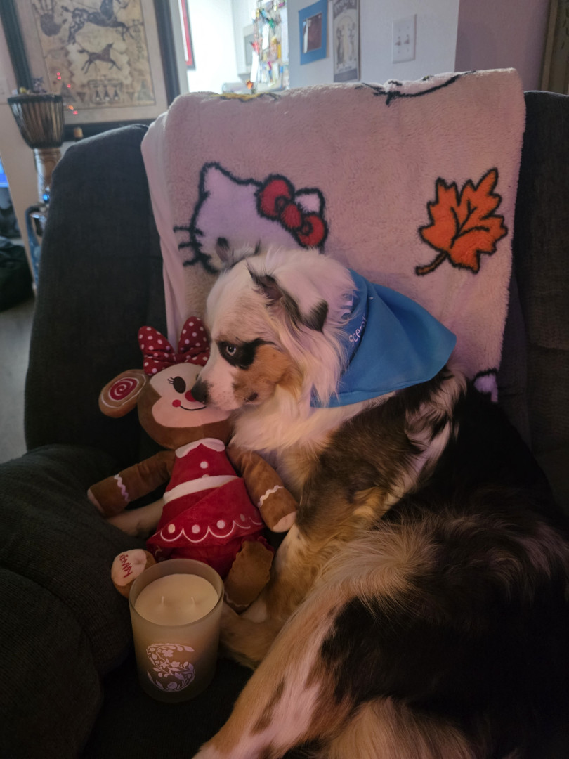 Fafnir favorite toy is his lamb Scentsy baby blanket, his favorite treat is biscuits you have to break and hide around the front room for him to find