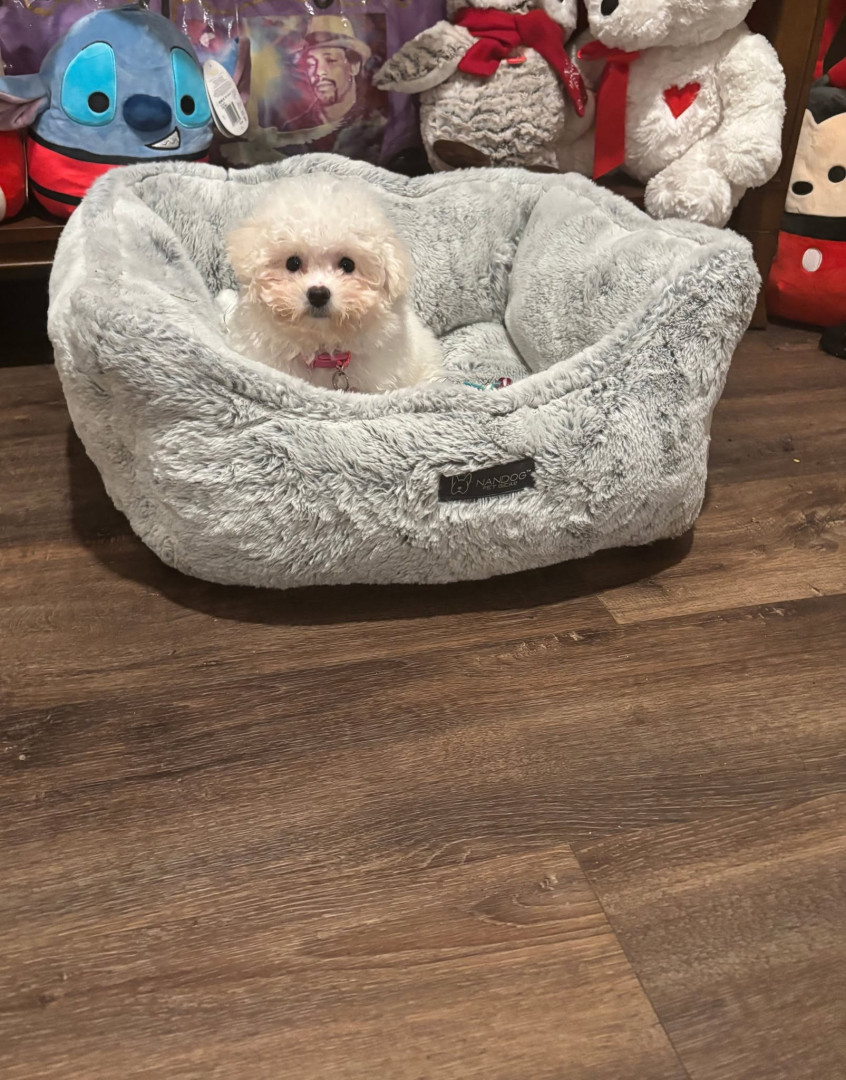 Fancy is a Brichon Frise, she's 7 months, she's very loveable, smart, intelligent, energetic, greedy 😂, playful and loves people.