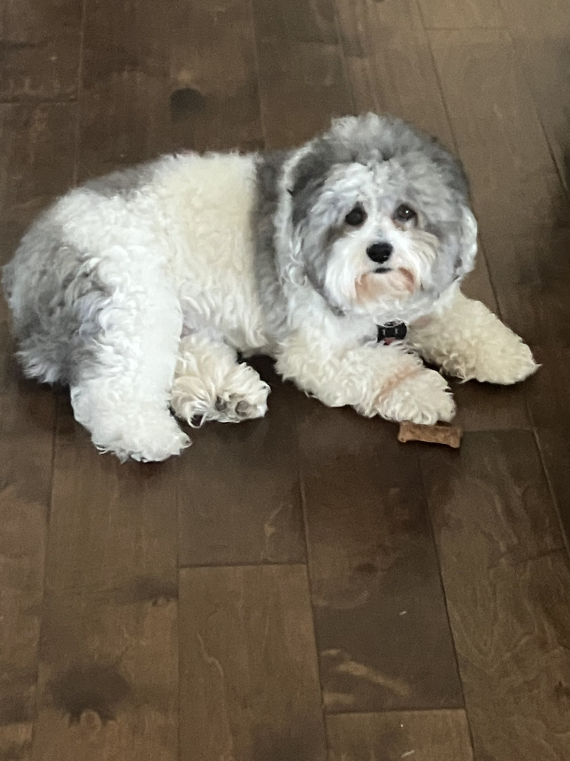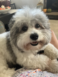 She’s a mini sheep doodle. She loves everyone. When she comes up to you,she smiles so broad.