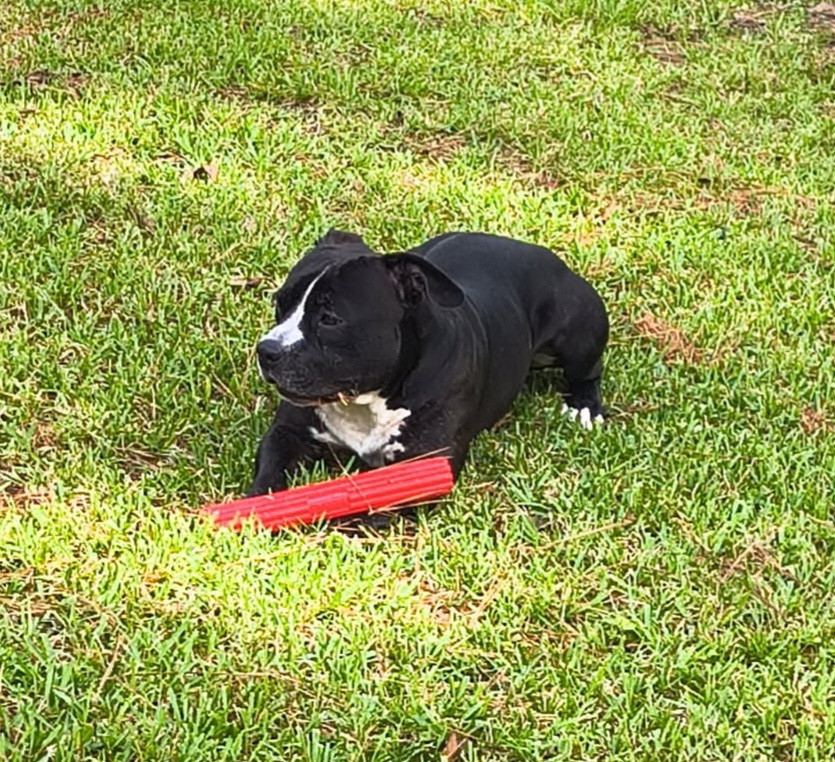 Fatboy has many unique qualities it's hard to say. He is the most gentlest, smart, caring well mannered all around best dog companion ever!