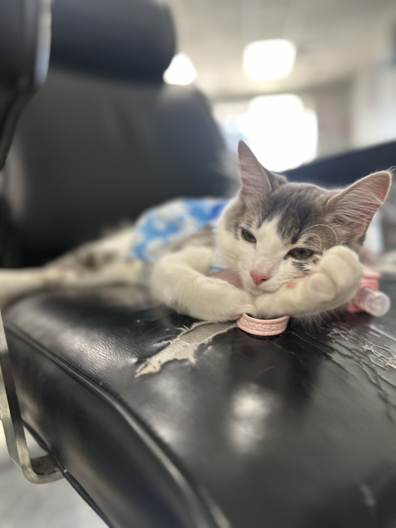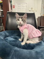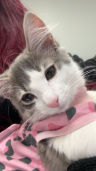 Her most unique quality physically is her cute little pink nose! She is also very flirty, she loves to jump on people’s lap and will purr and ask you to pet her.